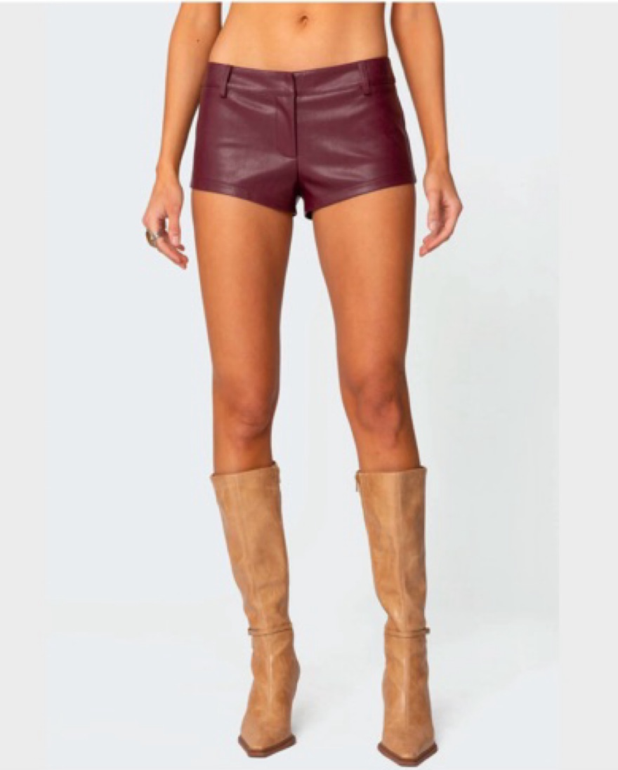 Edikted Micro Faux Leather Red Shorts