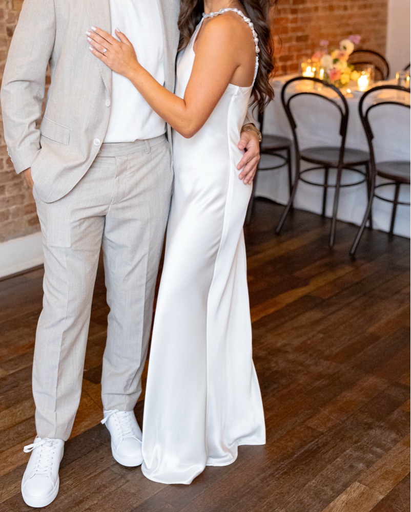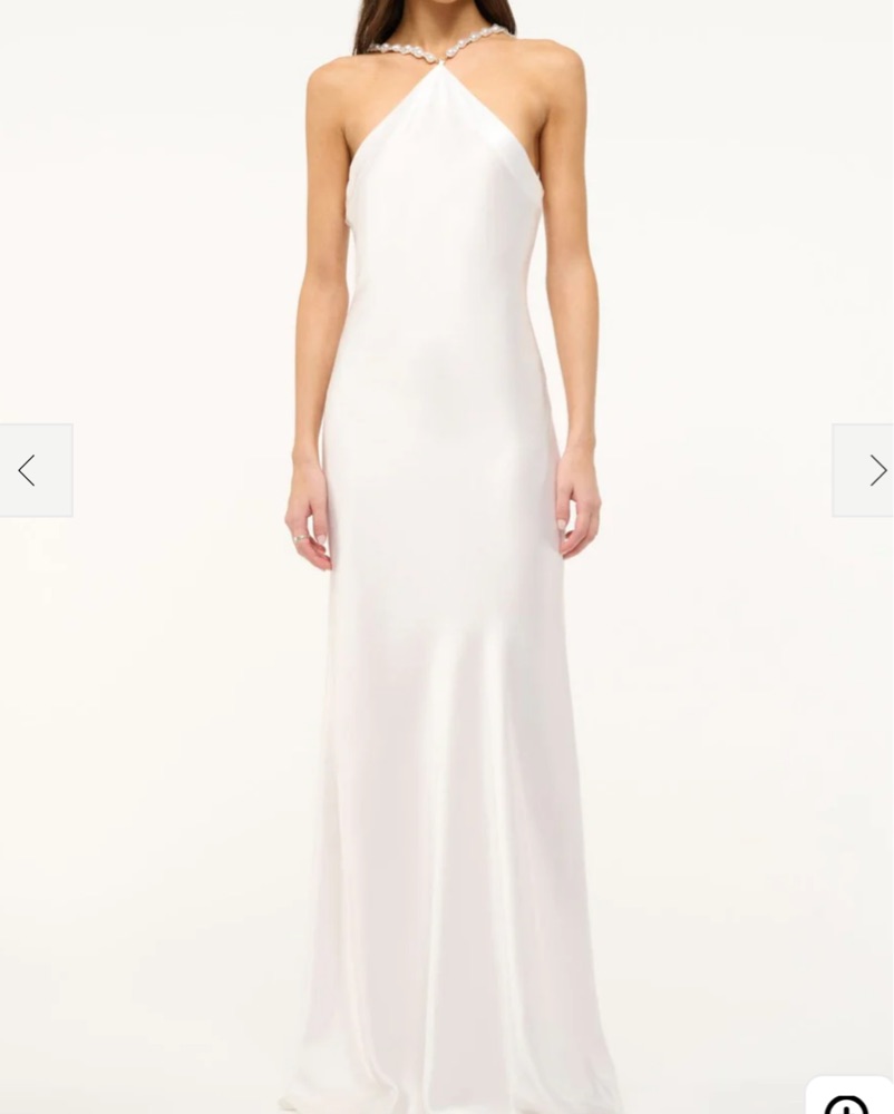 STAUD Cadence Beaded Strap Satin Gown. Worn only to rehearsal dinner. Shortened the dress a little bit. Color is white/ pearl
