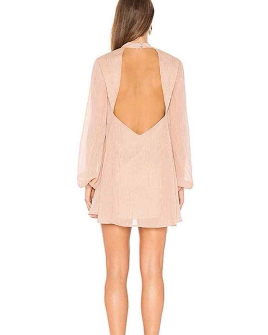 This boho light pink dress has flecks of golden lines and a button collar. It’s the perfect date night dress. With the extra lining underneath, it gives a barely there look that still has enough coverage. It’s super flowy and fits a ton of body types.