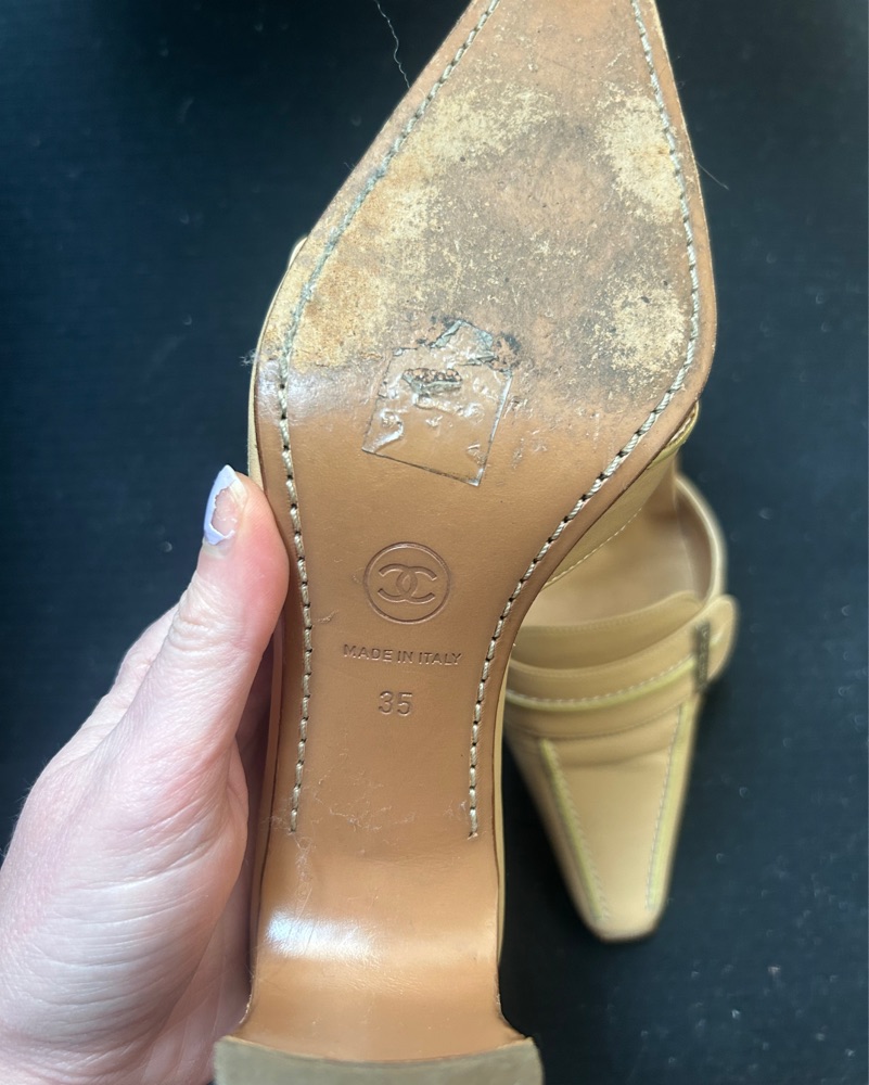 These elegant and timeless Chanel leather mules are perfect for a sophisticated evening out. The classic design and high-quality craftsmanship make them a versatile and stylish choice.