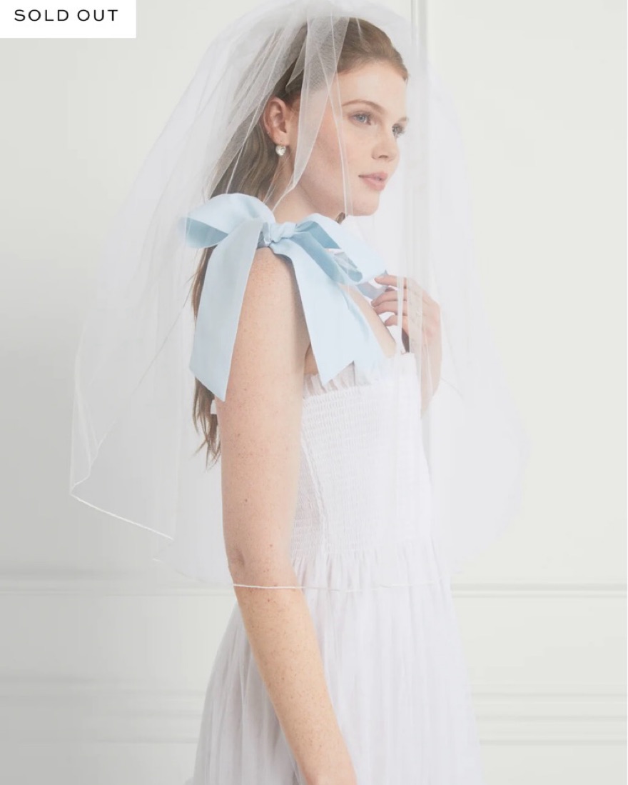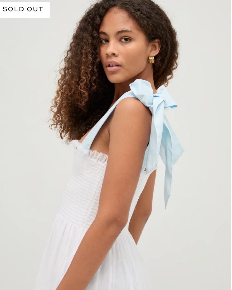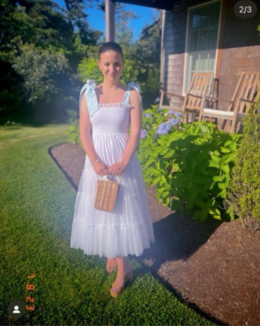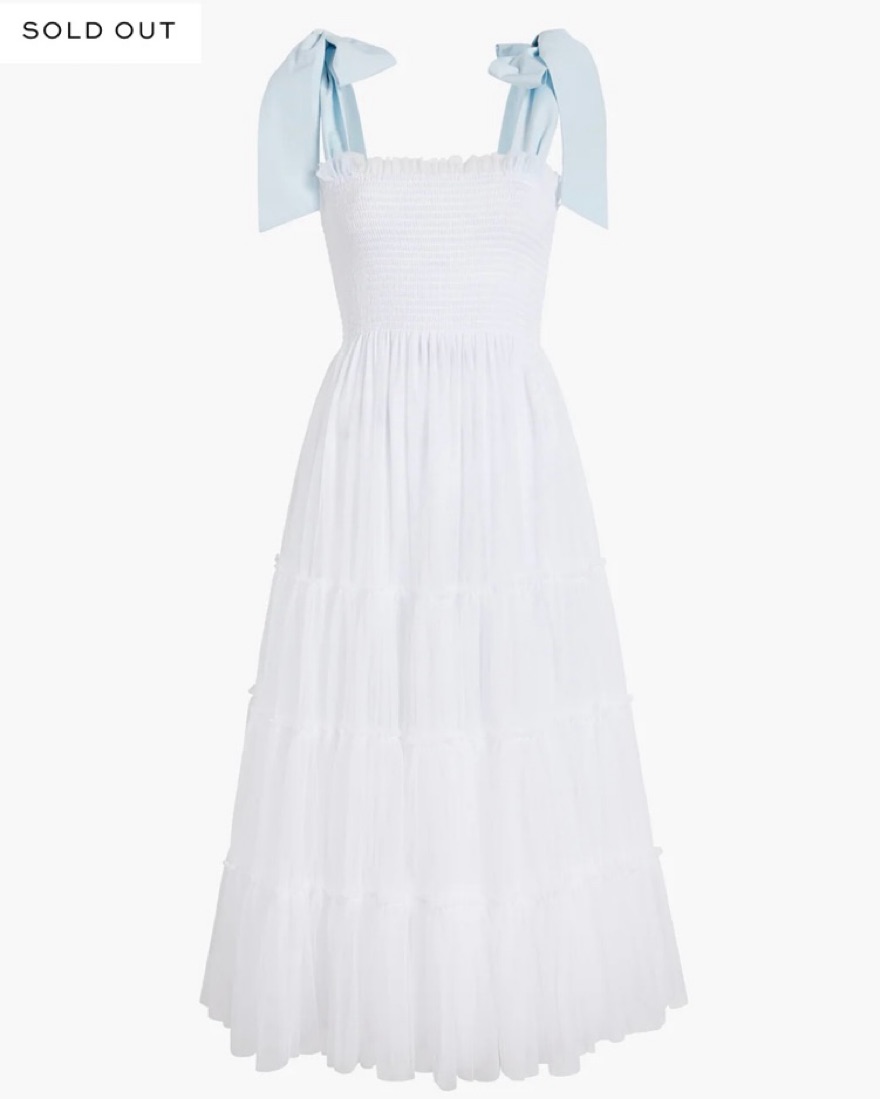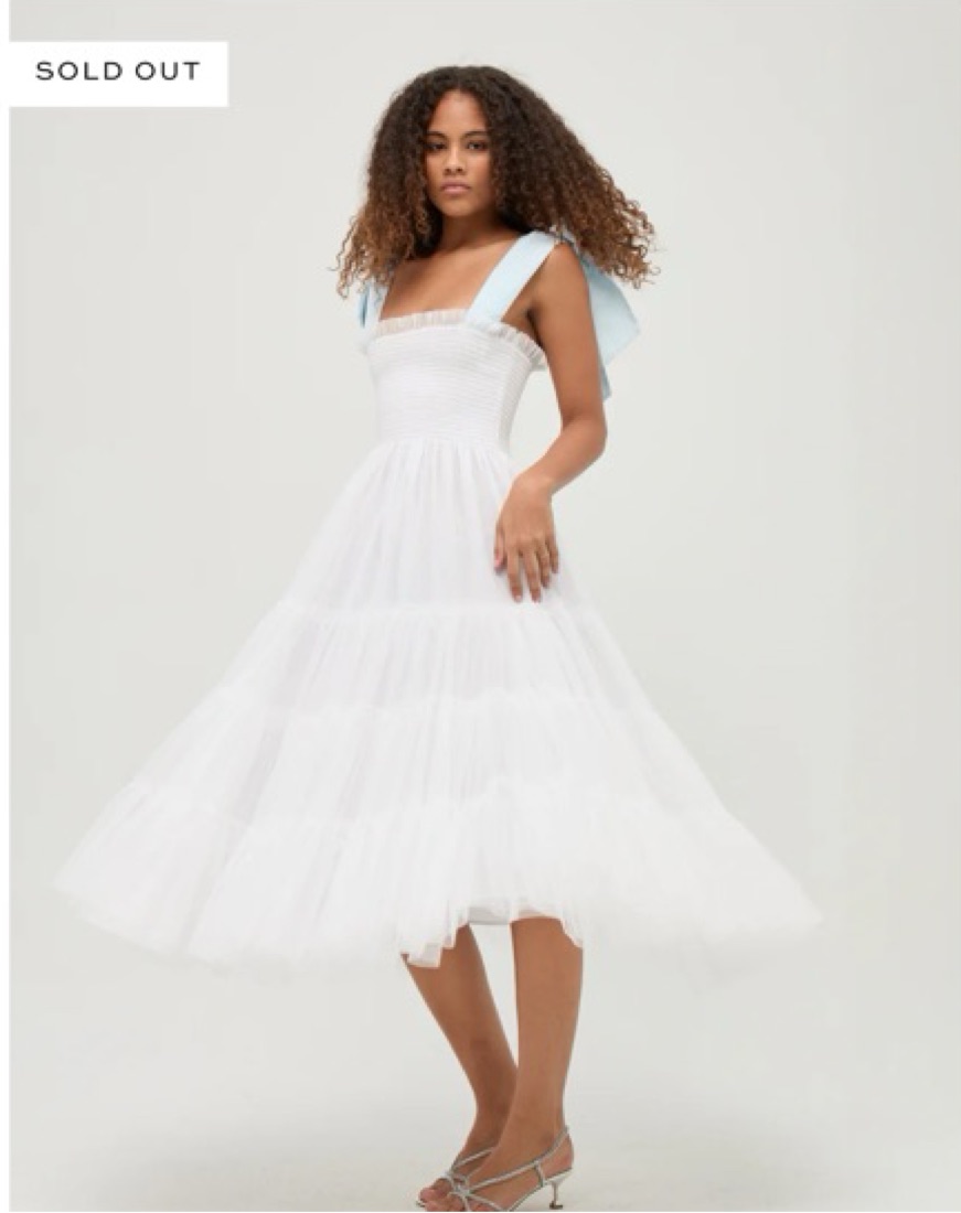 Amazing Hill House dress that is white tulle with blue bows as straps. I wore this for my bachelorette party with wedges but can be dressed up for rehearsal dinner or wedding as well! Worn once, in perfect condition