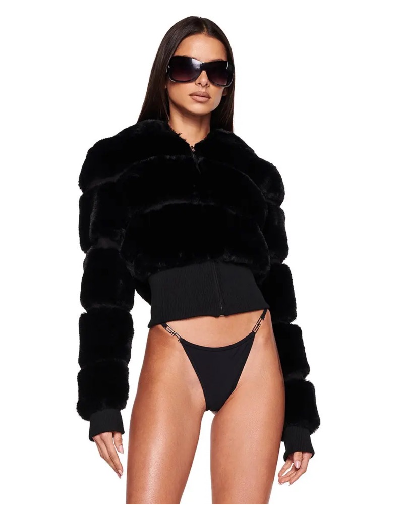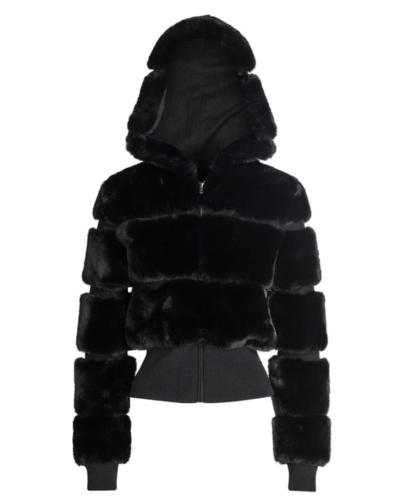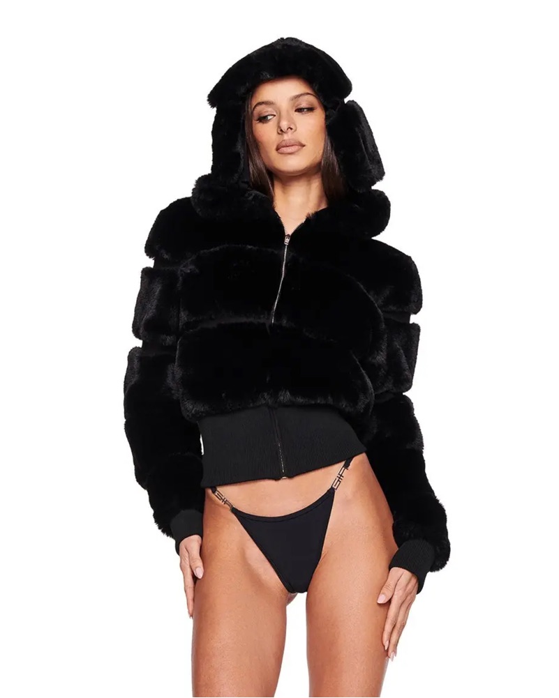 I AM GIA MARLOW JACKET (SOLD OUT) Black faux fur hooded jacket