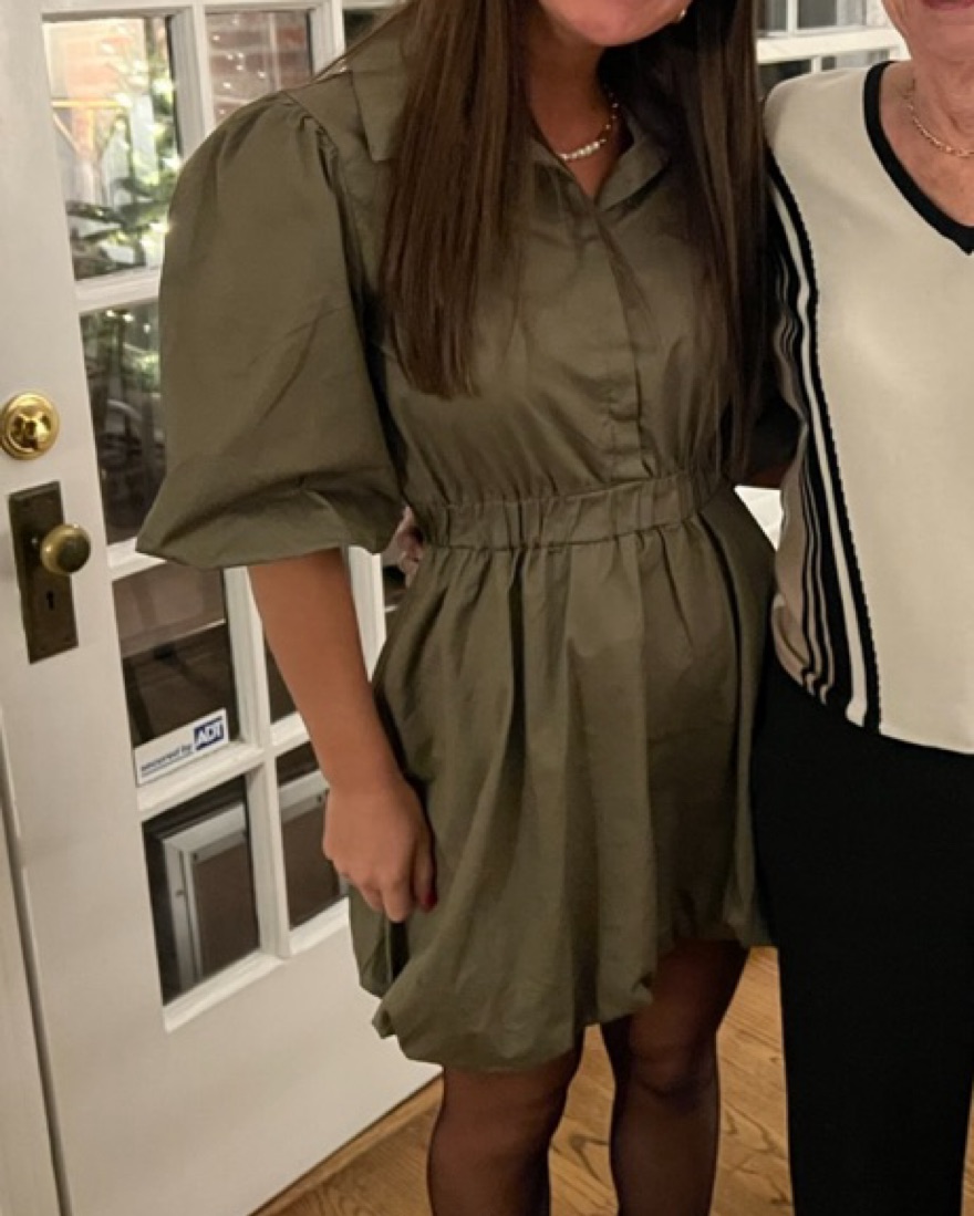 Puffy sleeves, stretchy waist