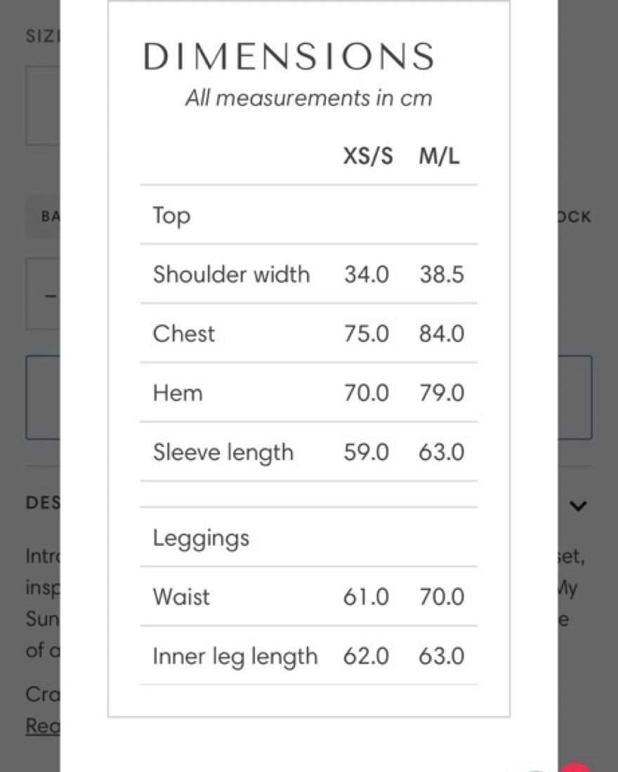 Size xs/s perfect for spring skiing and Apres skiing . Fits so flattering !