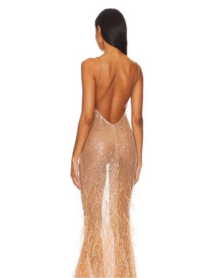 Built in liner. Veryyyy delicate fabric … please be very very careful with the bottom of the dress while wearing heels. The fabric is thin but overall the most beautiful dress ive ever worn!