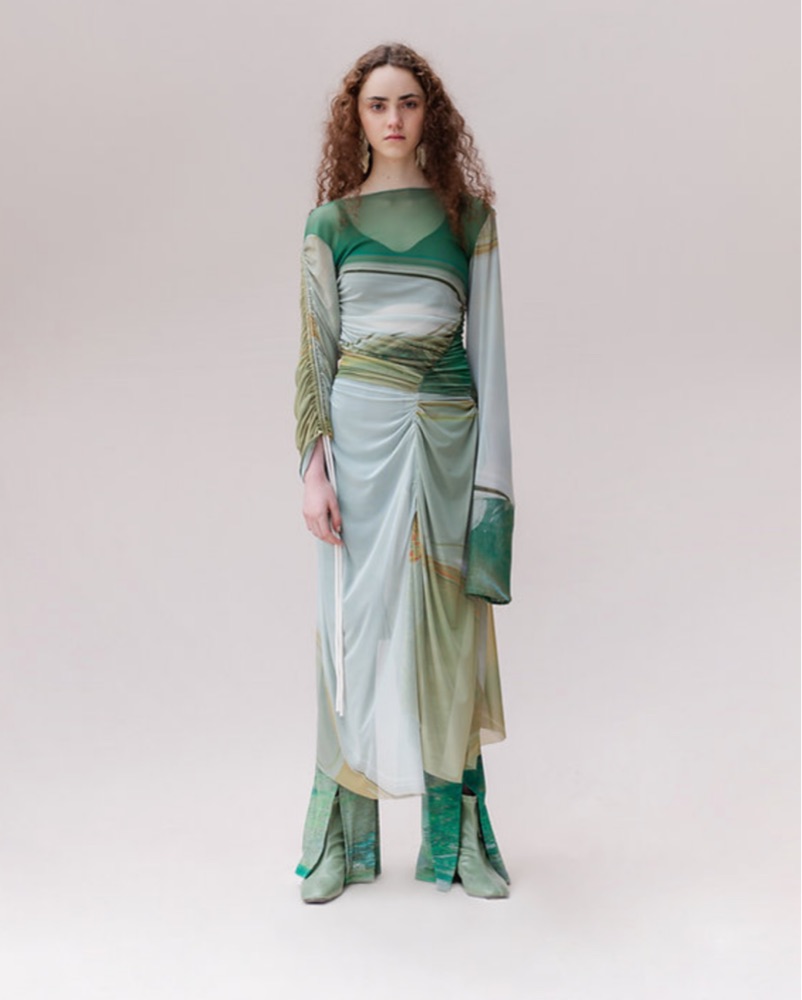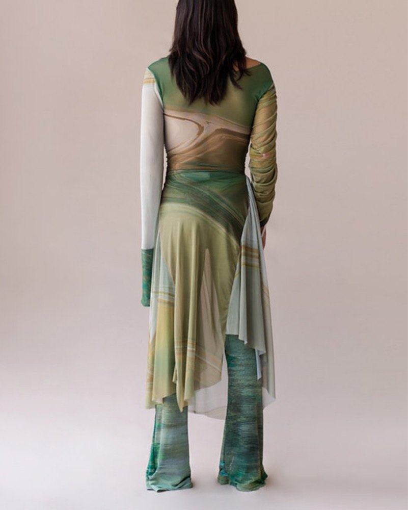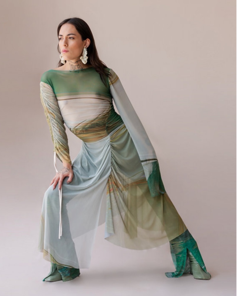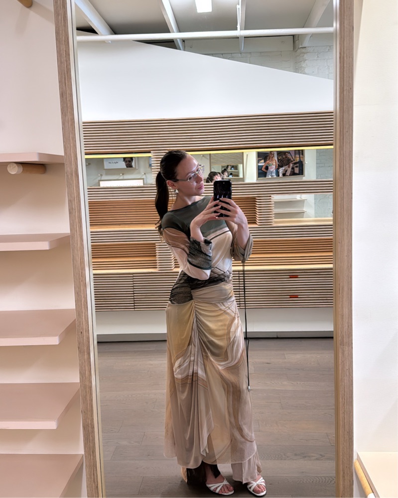 Size M, Martin across is a designer from Ecuador, I wear it with a skims slip dress underneath or the matching pants