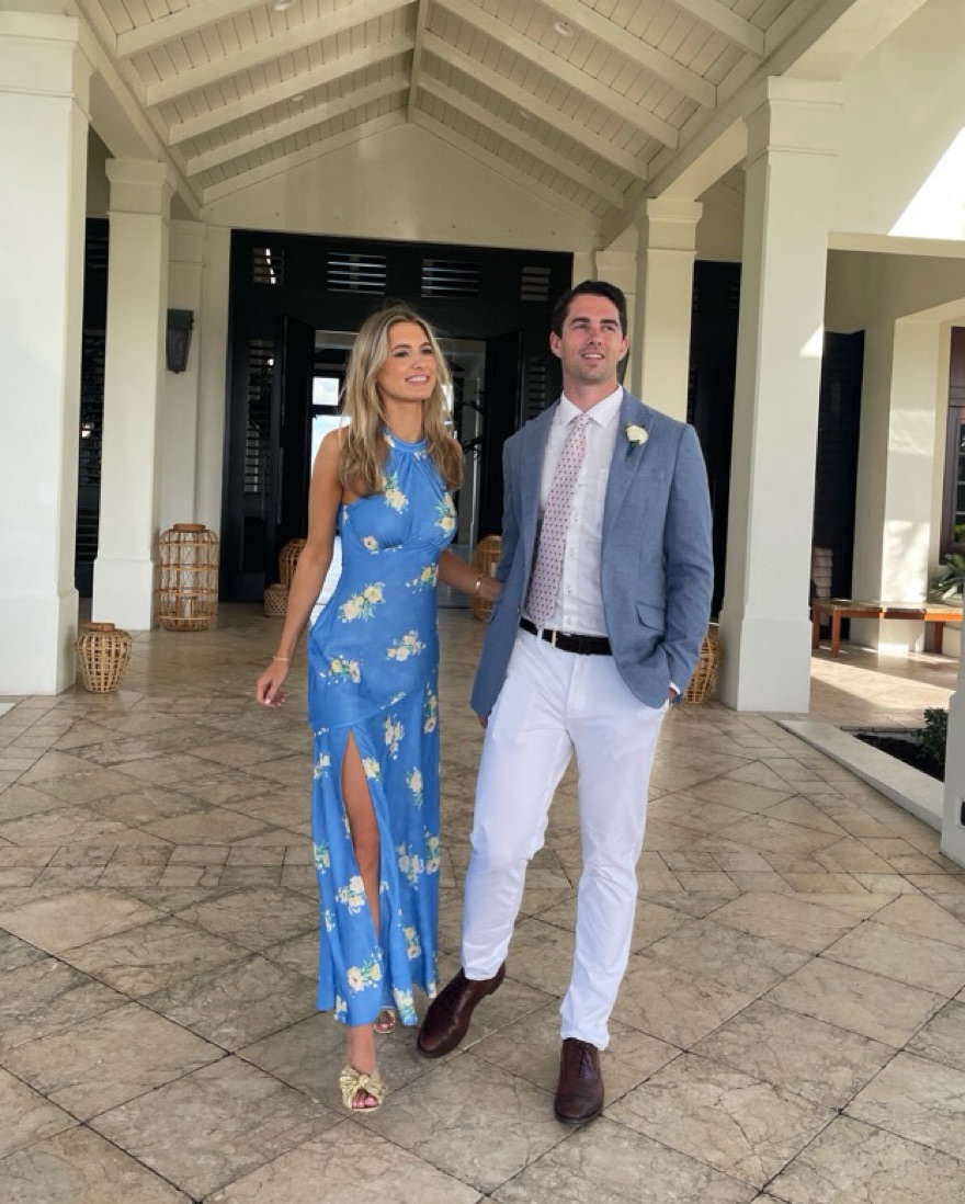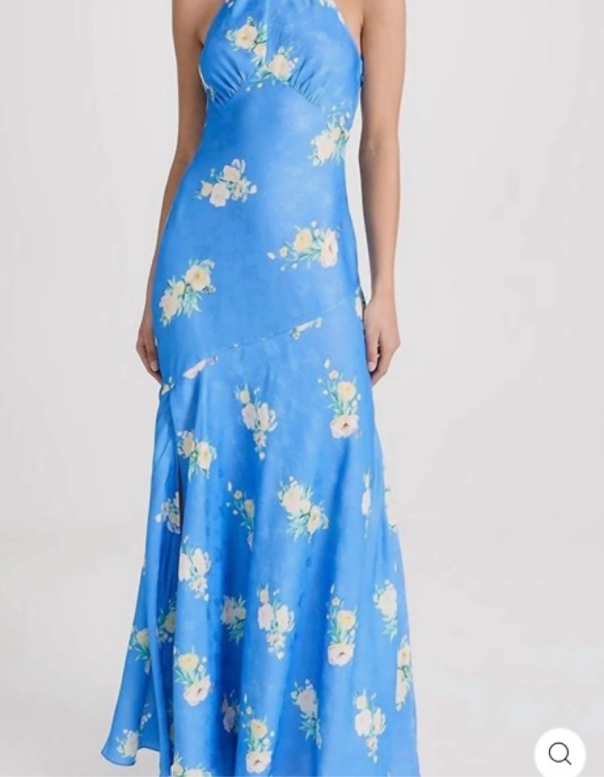 Summer wedding dress in floral blue
