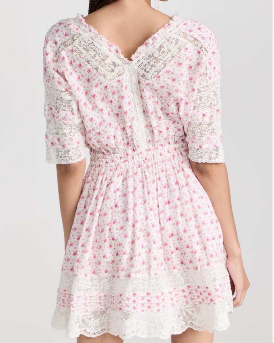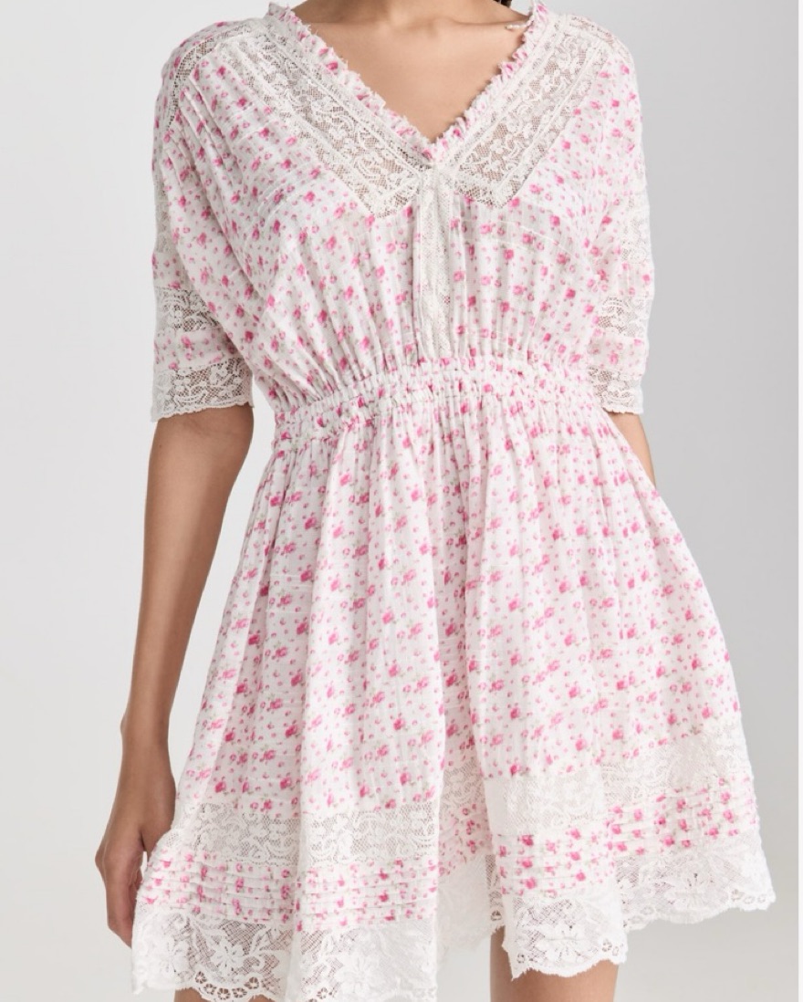 Super cute beach cover up or mini dress! Pink floral and lace detail