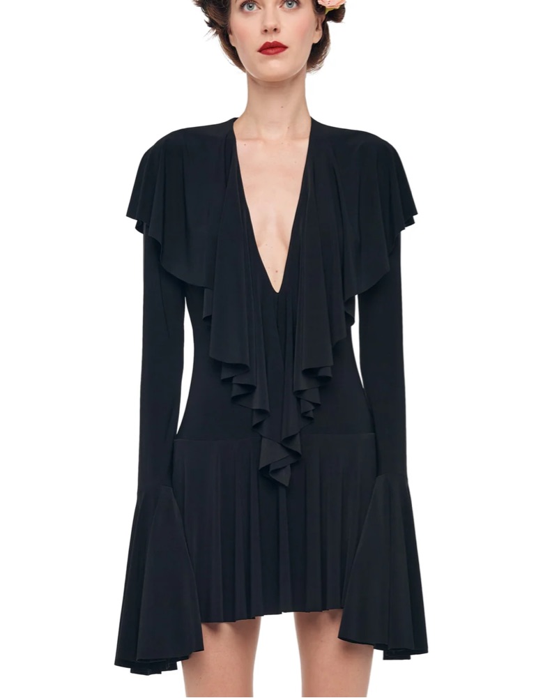Norma Kamali Deep V Ruffle Mini Dress