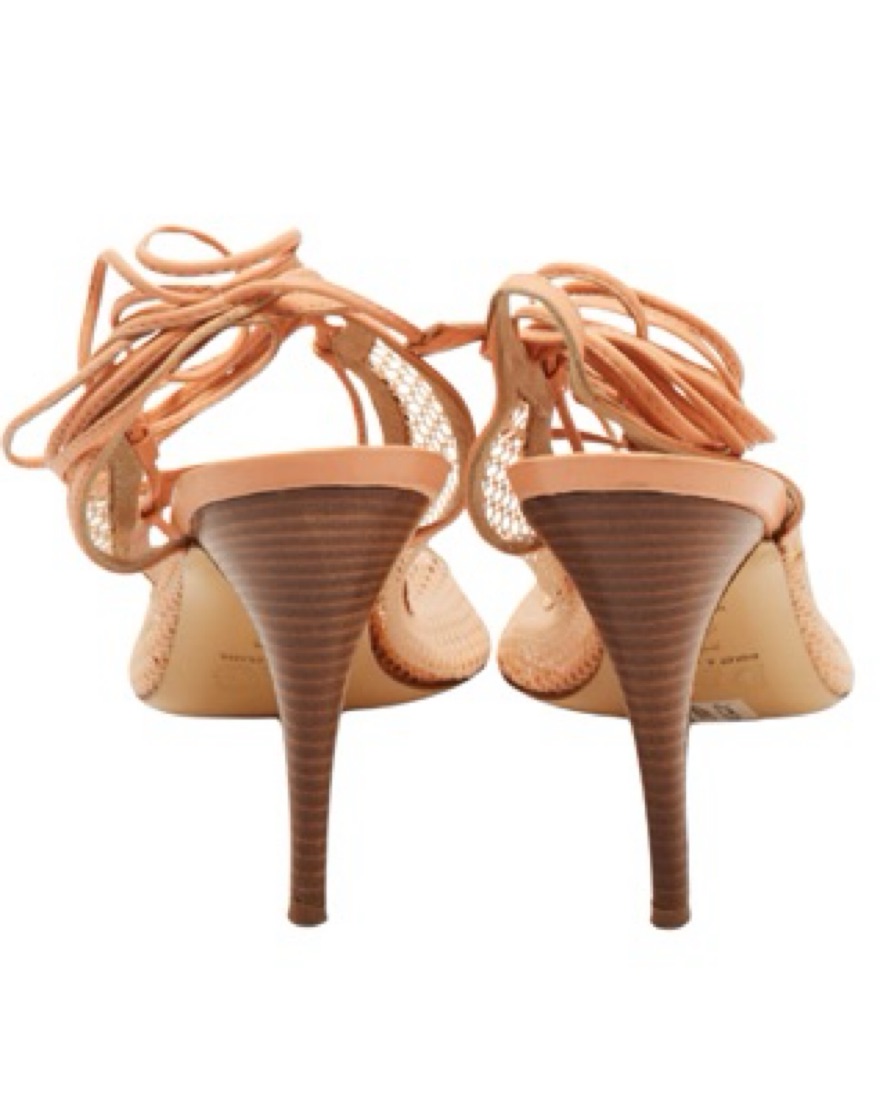 Peach D&G mesh/leather wrap around heels (circa 1995) featuring a fabric butterfly appliqué on both shoes. Vintage so may feature signs of wear but overall great condition. 38.5 IT or US 8.5 but runs narrow so I’d say better for a 7.5