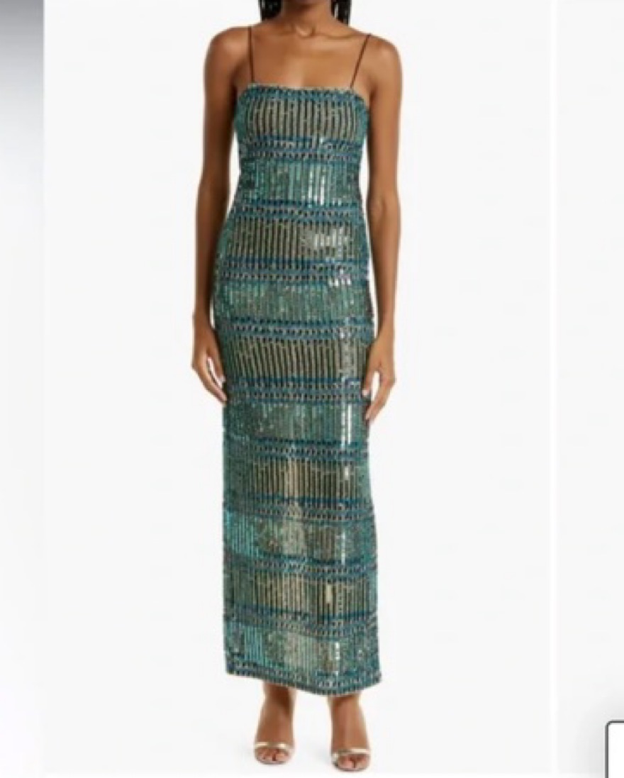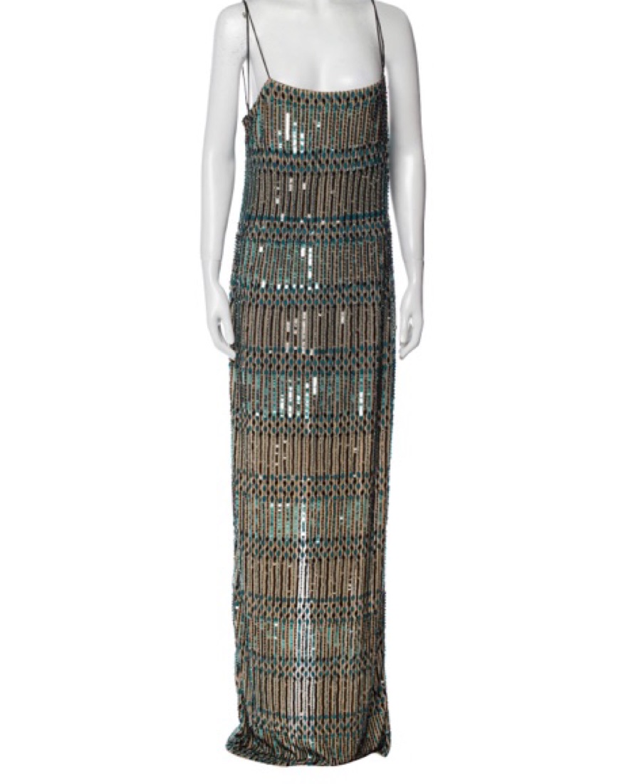 Alice+olivia gown. Name - NWOT. Its a size 6/M but I got it altered so fits more like a small. But also could fit a medium. Its kinda loose on me but i like it like that. Due to the alter. there is the smallest row on the back that is missing sequenence(last photo), but NOT noticeable. Worn once.