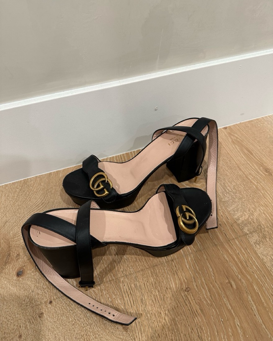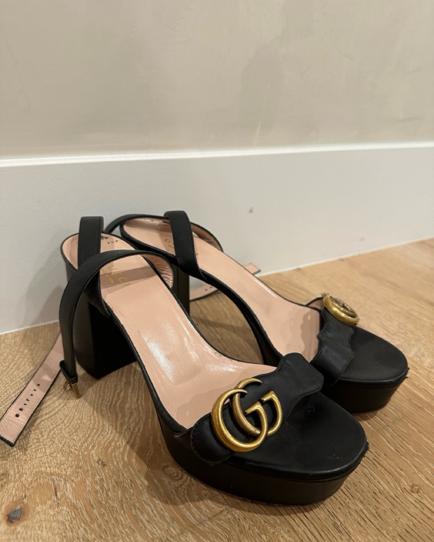 Black Gucci Strap Around Heels by Gucci - Pickle
