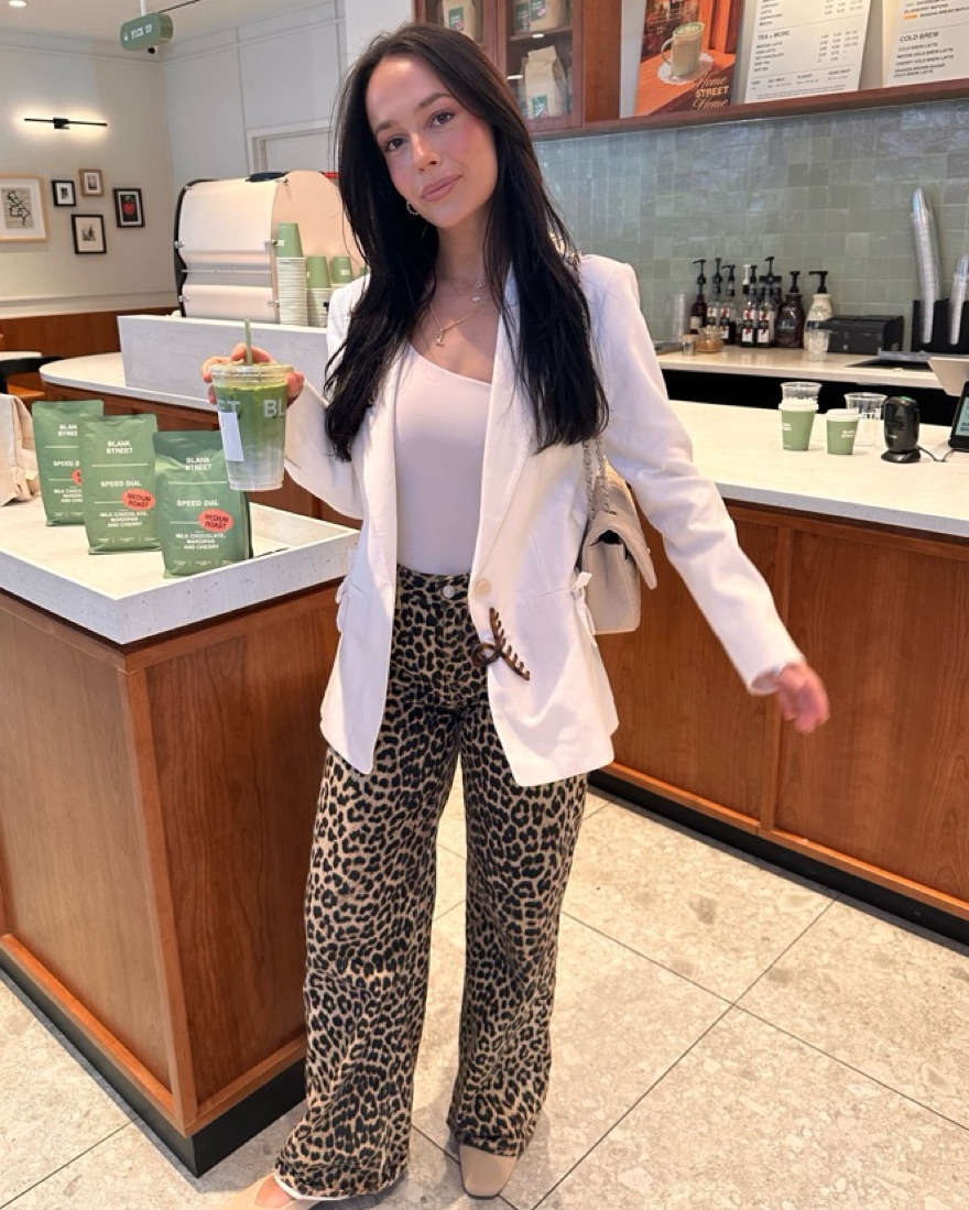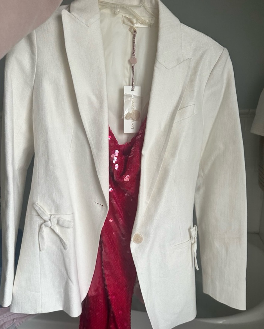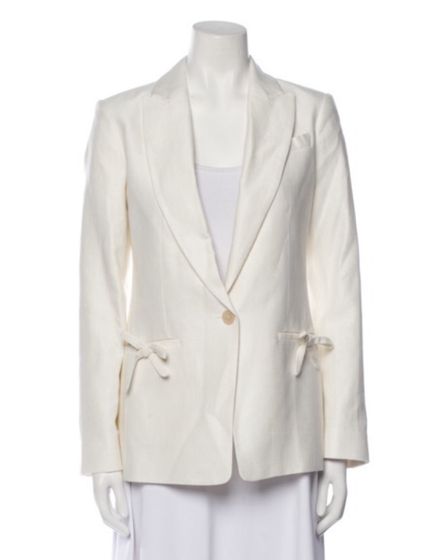 Off whit colored blazer with bows at pockets. Perfect for a brunch, lunch date, meeting, work, or daytime look!