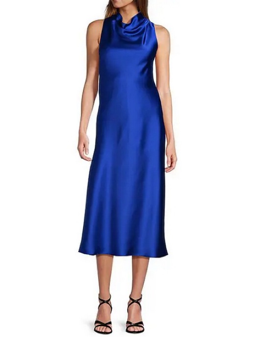 Royal blue satin dress perfect for a wedding, date party, or formal occasion. She’s a classic and super comfy! Only worn once for a very short amount of time!💙