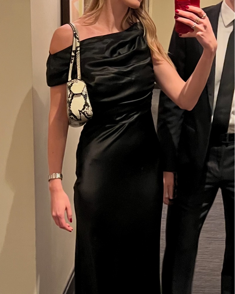 Paris Georgia black davie dress maxi perfect for black tie and weddings