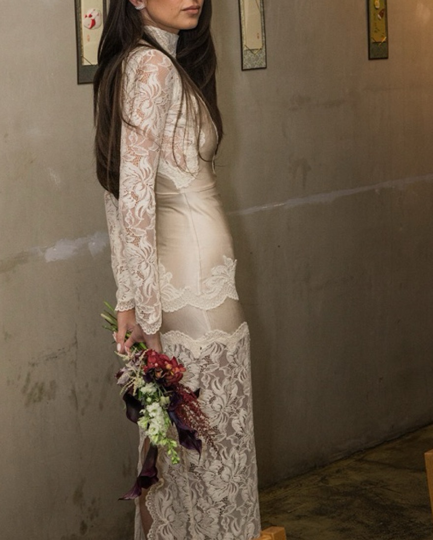 Sold Lace-trimmed silk-satin Gown