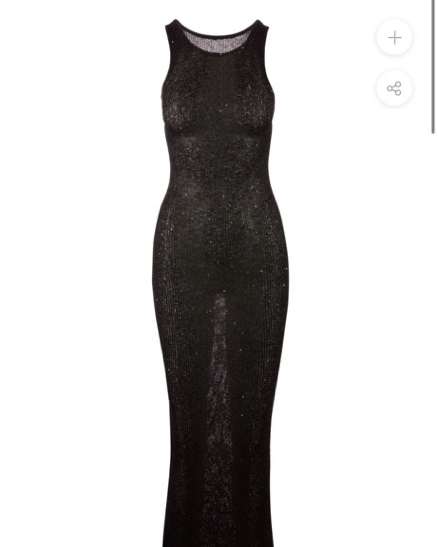 The Natalia Dress in Black Sequin by Asta Resort. An opulent floor length dress designed to be the centre of attention and for flaunting your figure. Made from a cotton based knit woven in with micro sequins from head to toe.