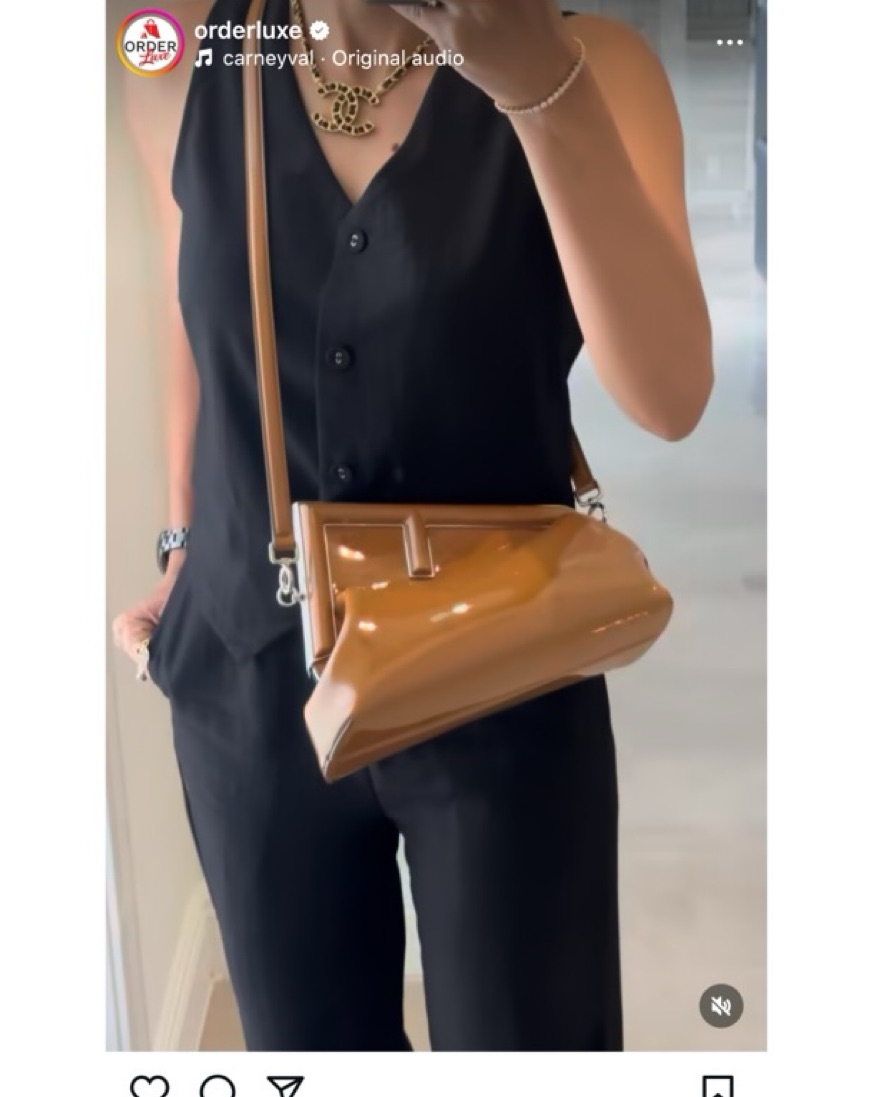 Invite the fashionable charm of the Fendi First bag into your closet with this gorgeous piece. It is a midi-sized First bag in patent leather and silver-tone hardware. The top F logo stands out beautifully, and the shoulder strap provides easy carrying options. Fits a phone and other essentials.