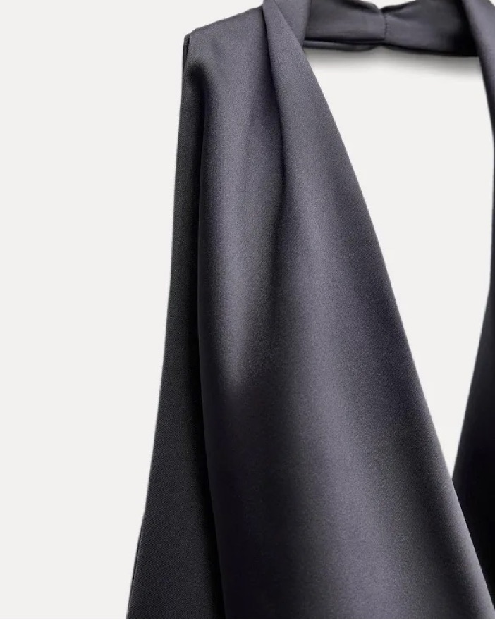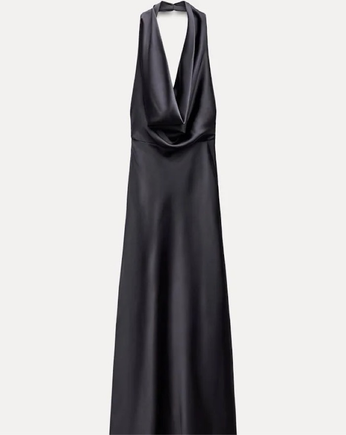 Wore to a wedding! Size S, fits S/M. I normally wear a size 6. Midnight blue open back satin dress. Super flattering! You definitely need fashion tape for the front if you’re going to move even a bit. Fits long instead of midi on me and I’m 5 5 and wore 3 in heels.