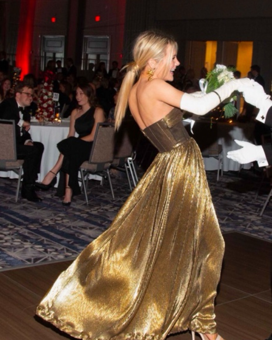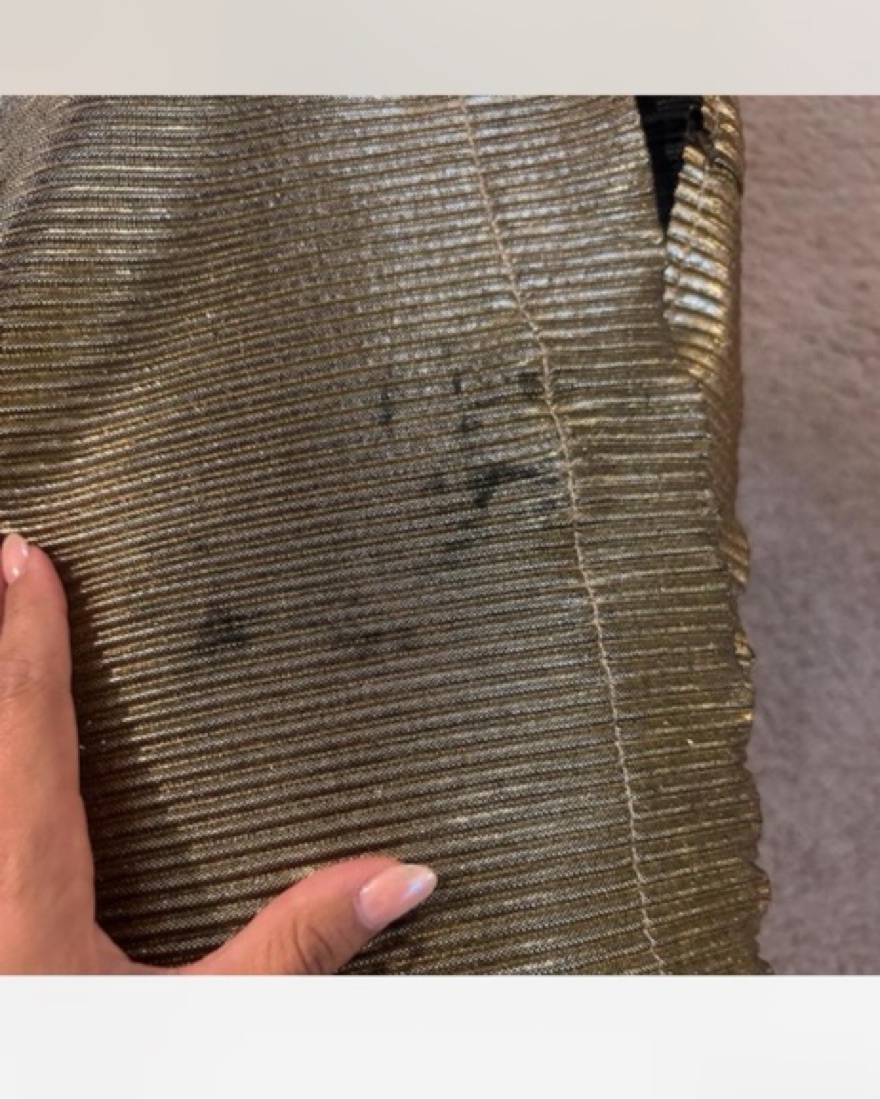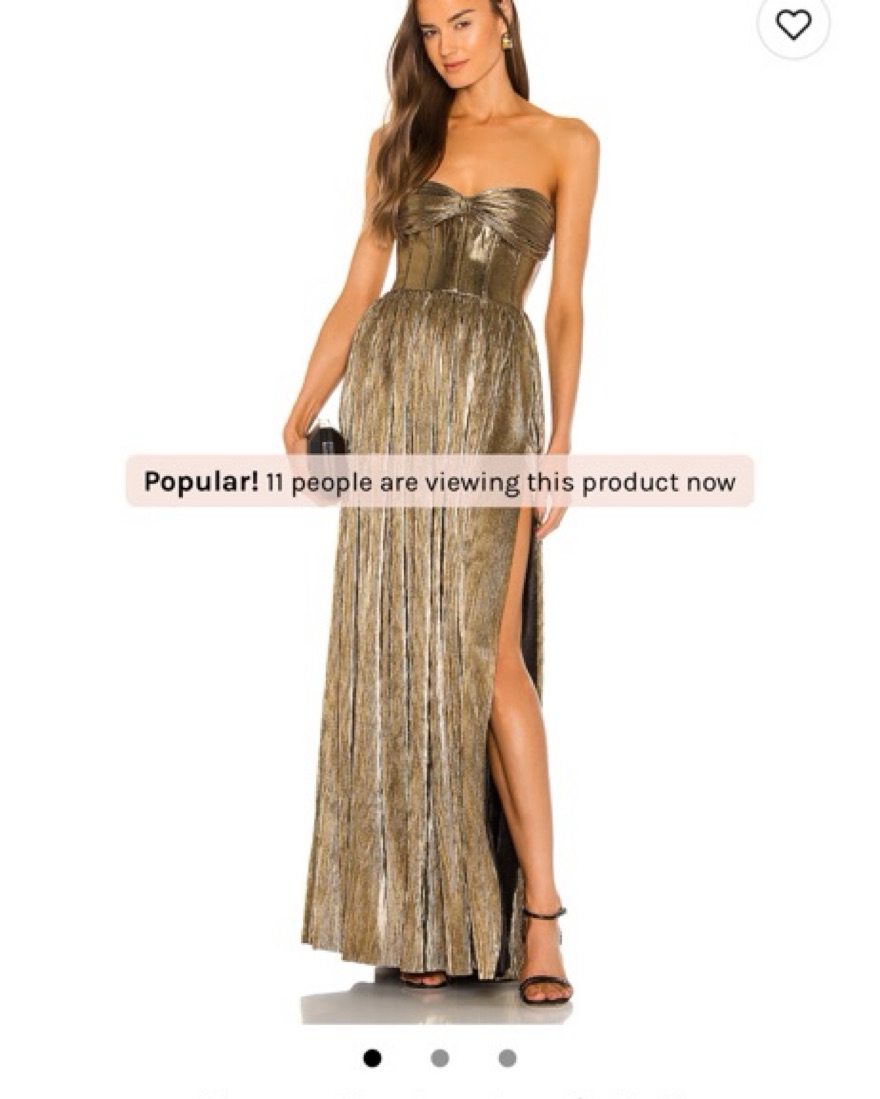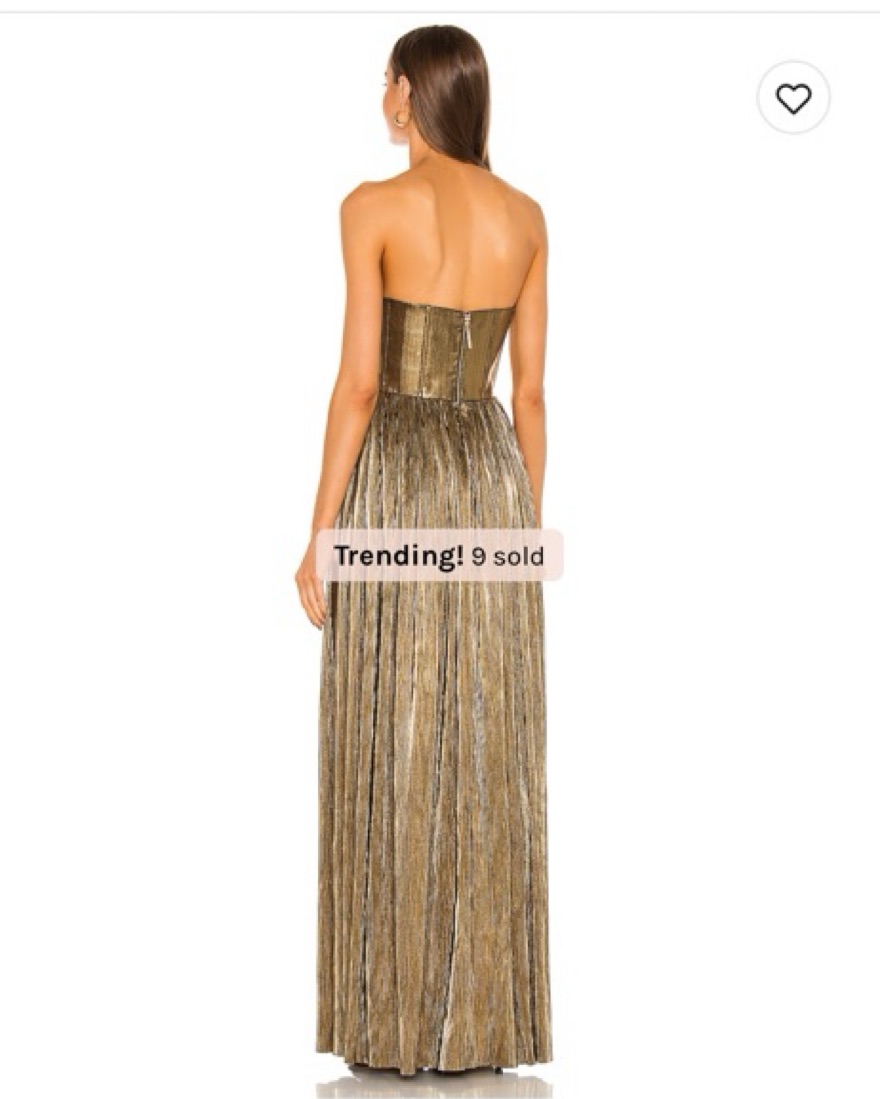 beautiful bronx and banco strapless gold gown! worn twice, small stains near hem. size xs