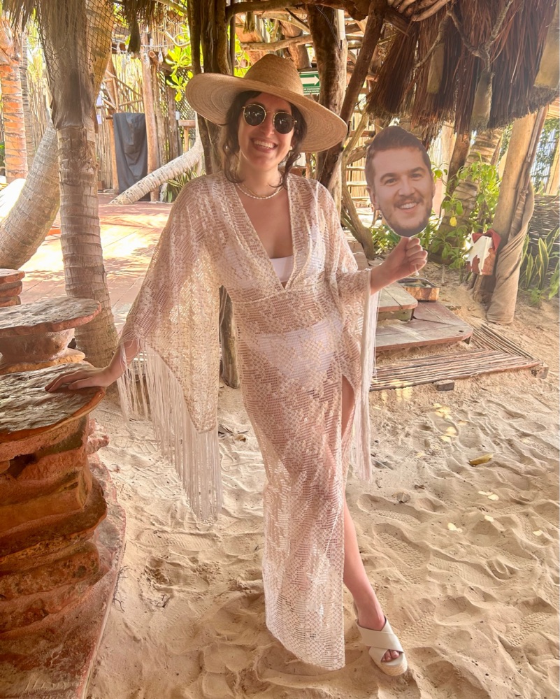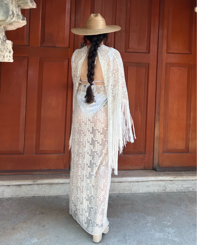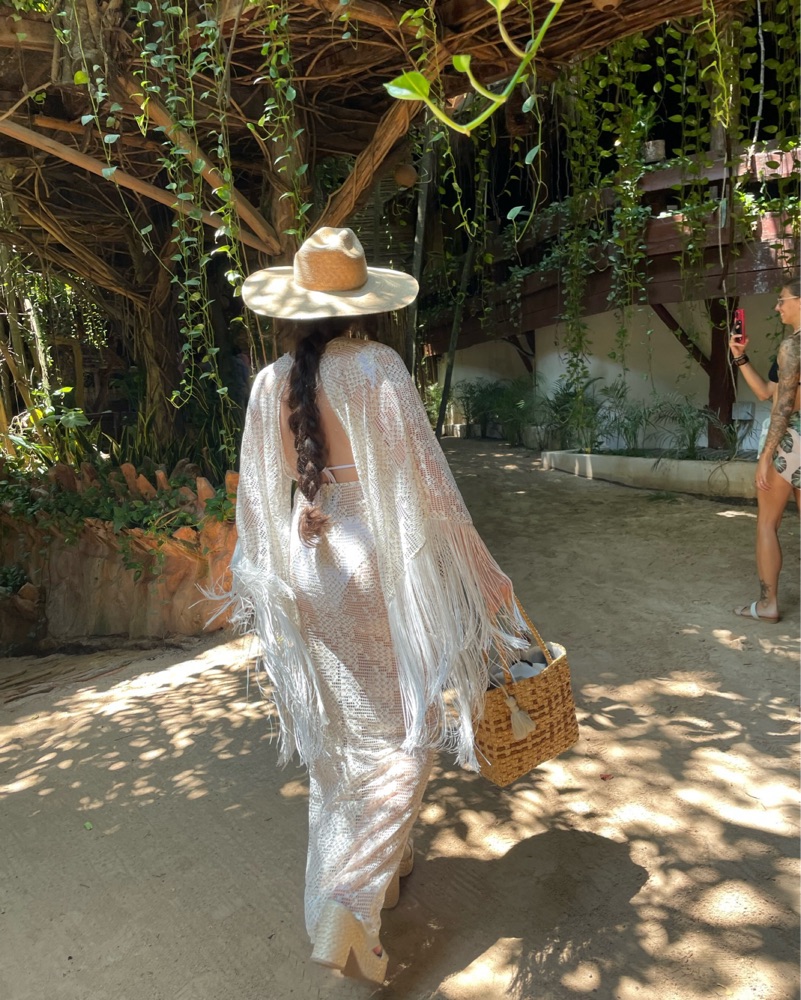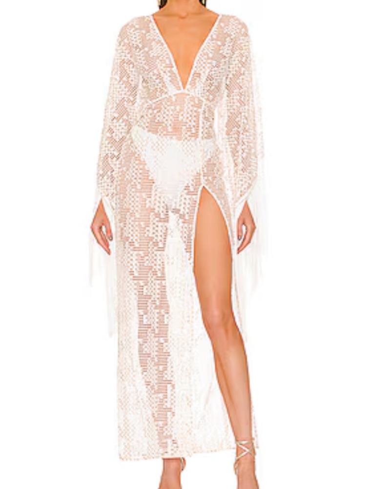 Beautiful white fringe cover-up. Has little hints of gold in it too. Worn for my bachelorette. Perfect for beach clubs!