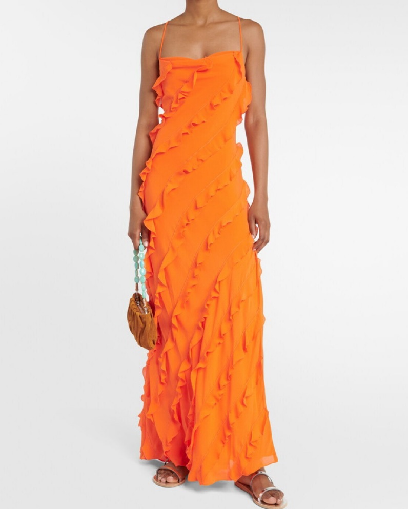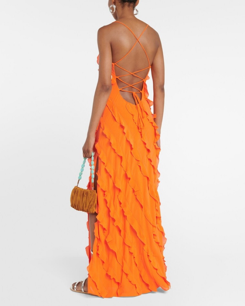 Staud Orange Ruffle Maxi Dress