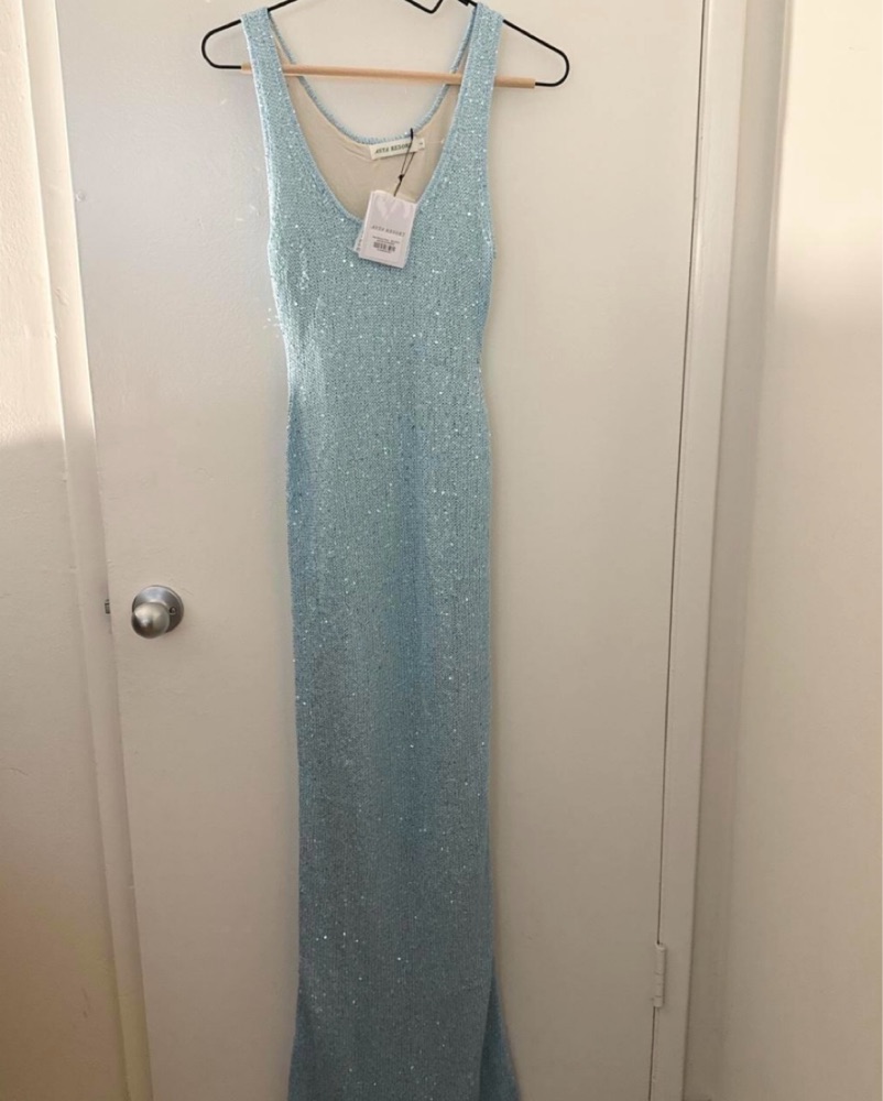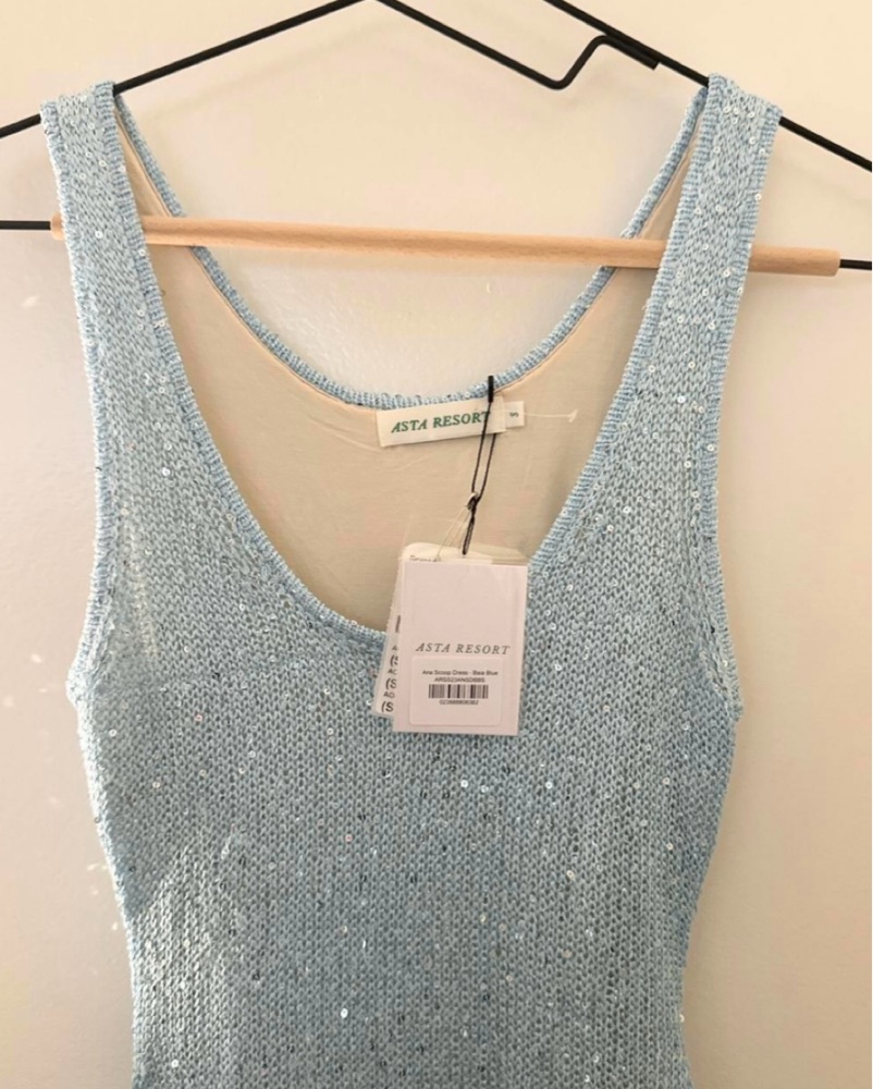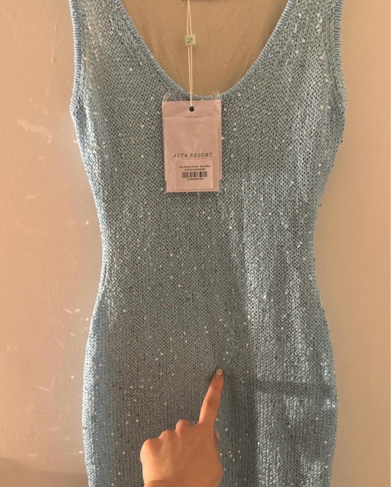 The Ana Dress in Baia Blue Sequin by ASTA RESORT.