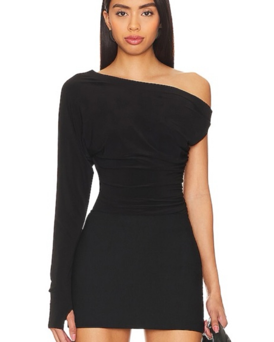 Norma Kamali One-Sleeve Drop Shoulder Top, Size S