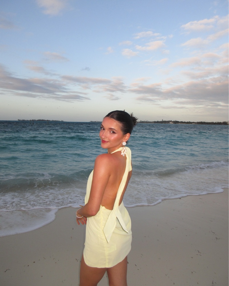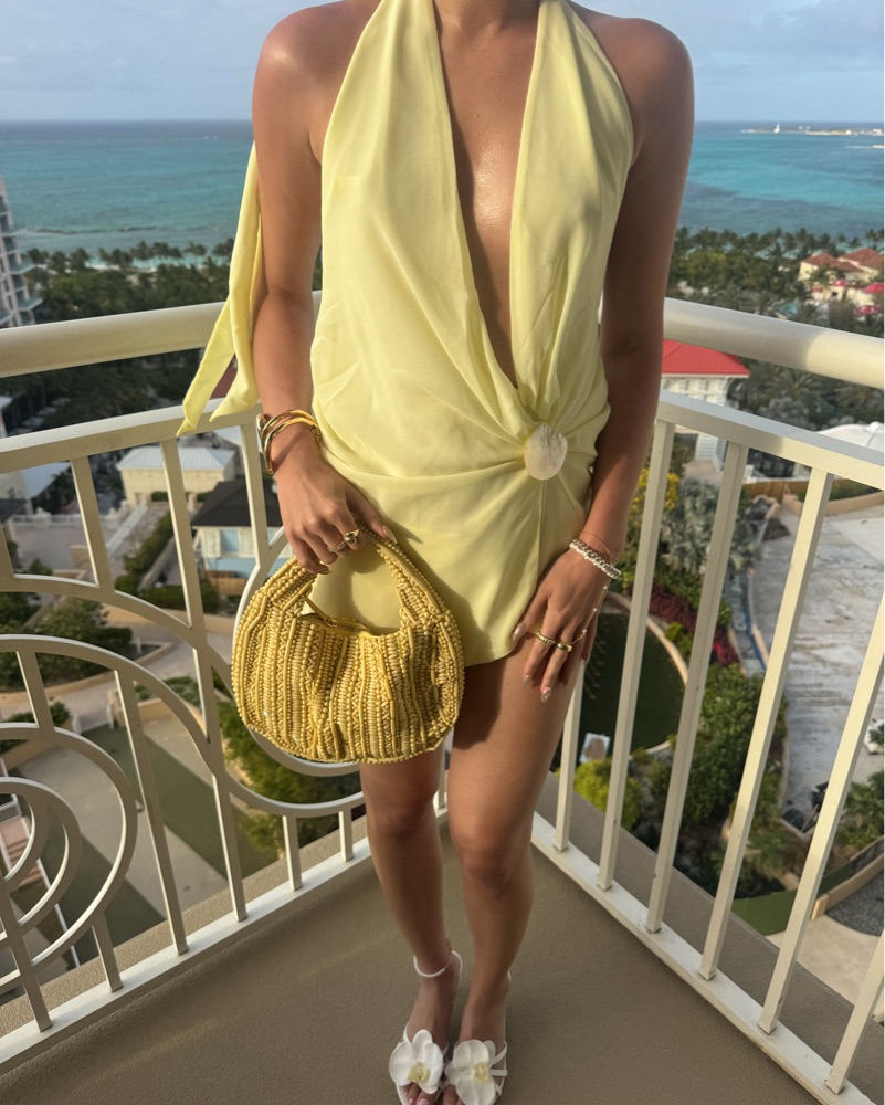 the cutest yellow dress perfect for summer and/or vacay! worn once, please be careful of the shell detail on the hip!