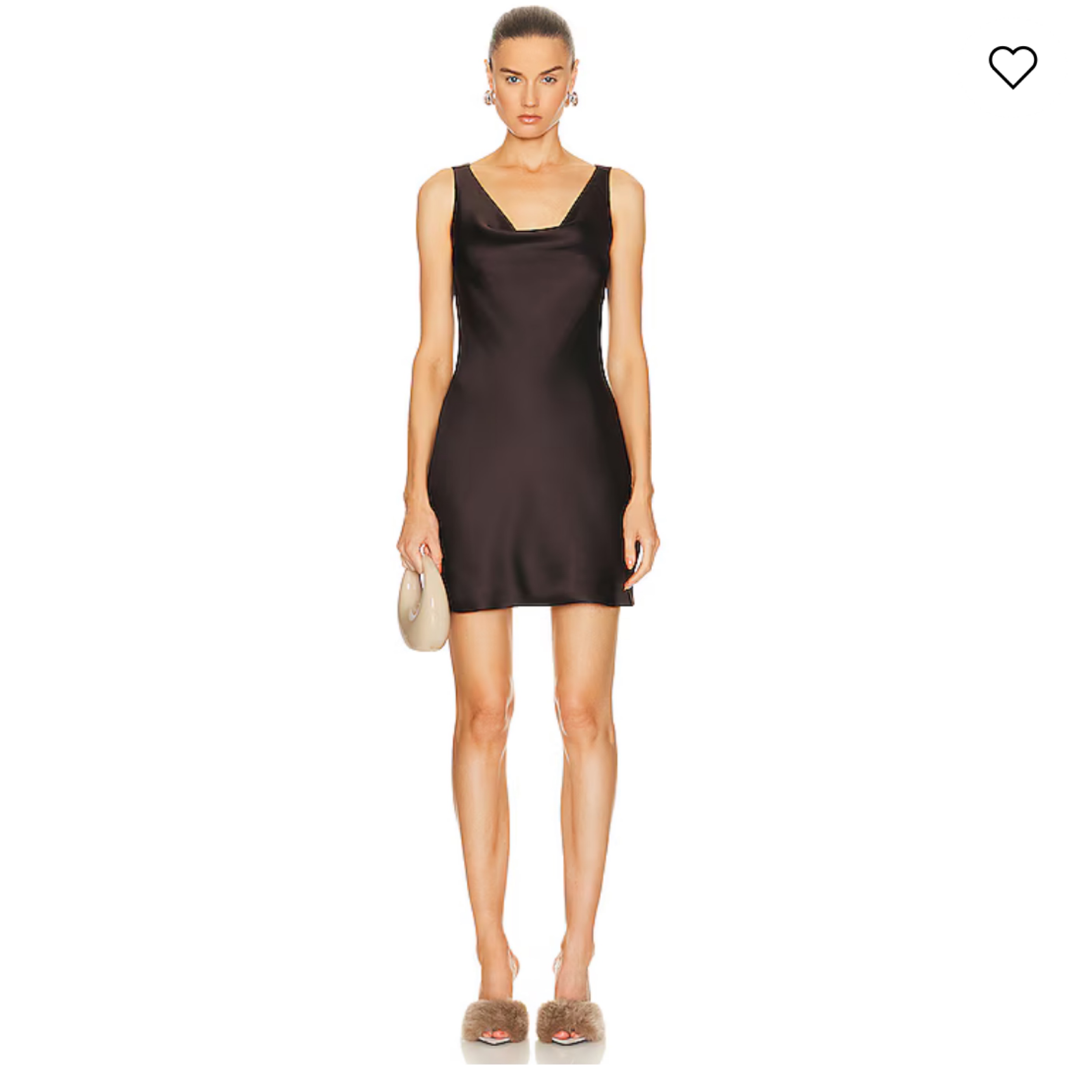 Purchased on FWRD - Norma Kamali Maria Mini Dress in Chocolate Brown. This dress has a draped neckline and satin finish. Please dry clean if renting <3