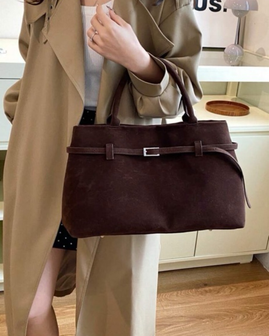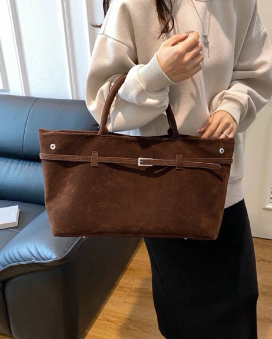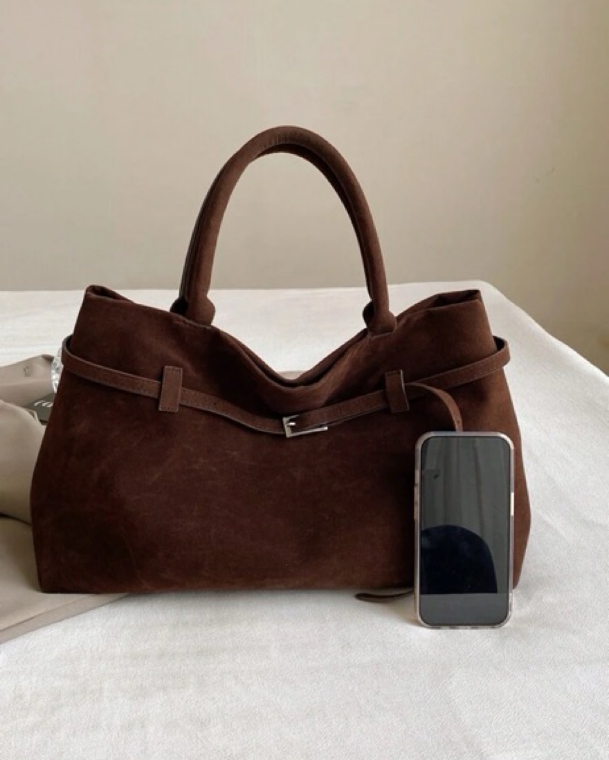 This chic and versatile suede tote is perfect for elevating any outfit, from casual to formal. Its roomy yet structured design makes it a must-have for the modern woman on-the-go.