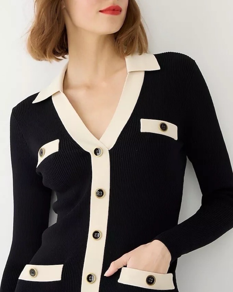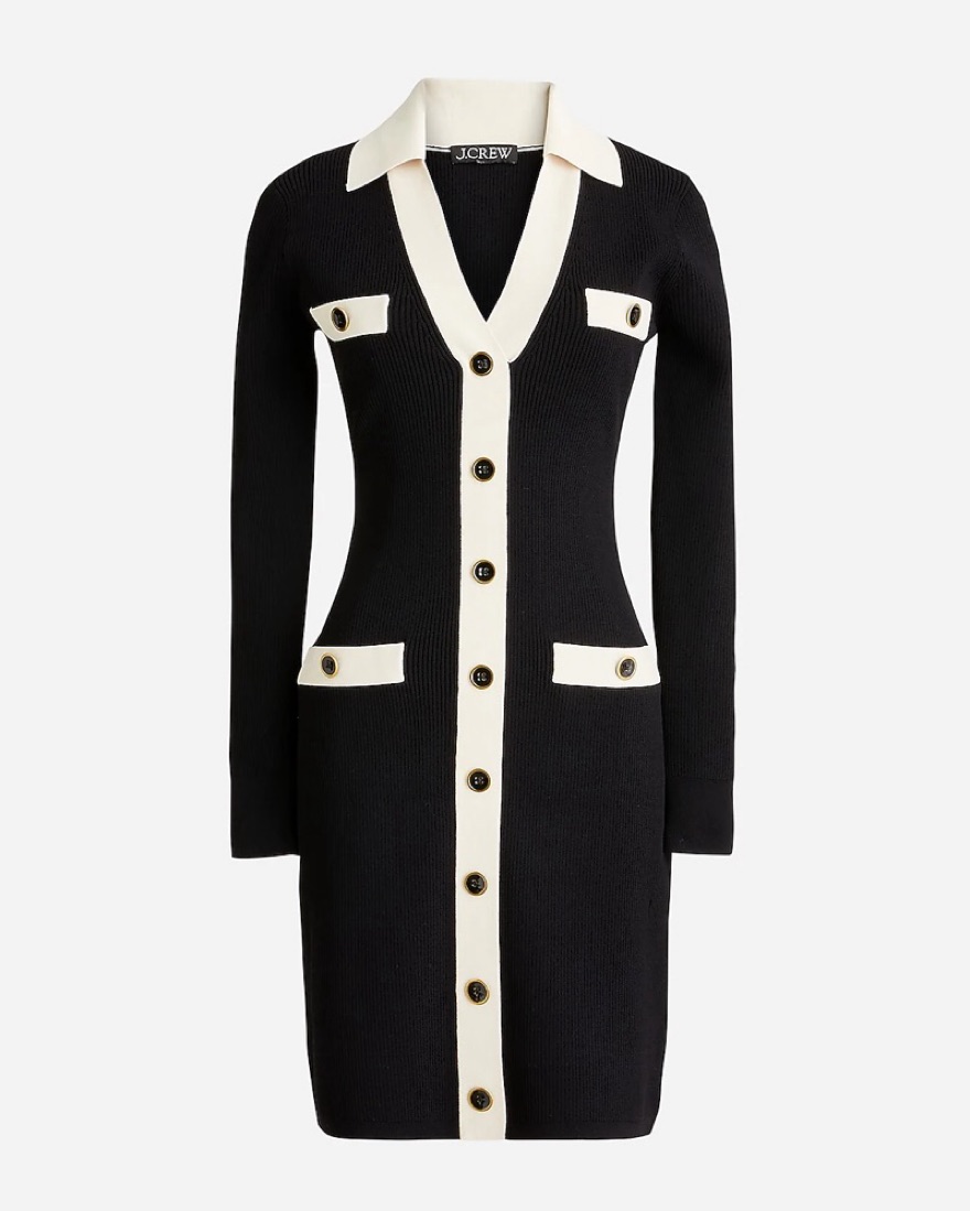 A classic sweater-dress for in-between seasons. - This mini dress features contrast tipping details down the front and at the collar and cuffs. Plus, it's made with our Supersculpt fabric, a stretchy, textured yarn that holds you in for a perfectly sculpted fit, every time you wear it. 63% viscose/3