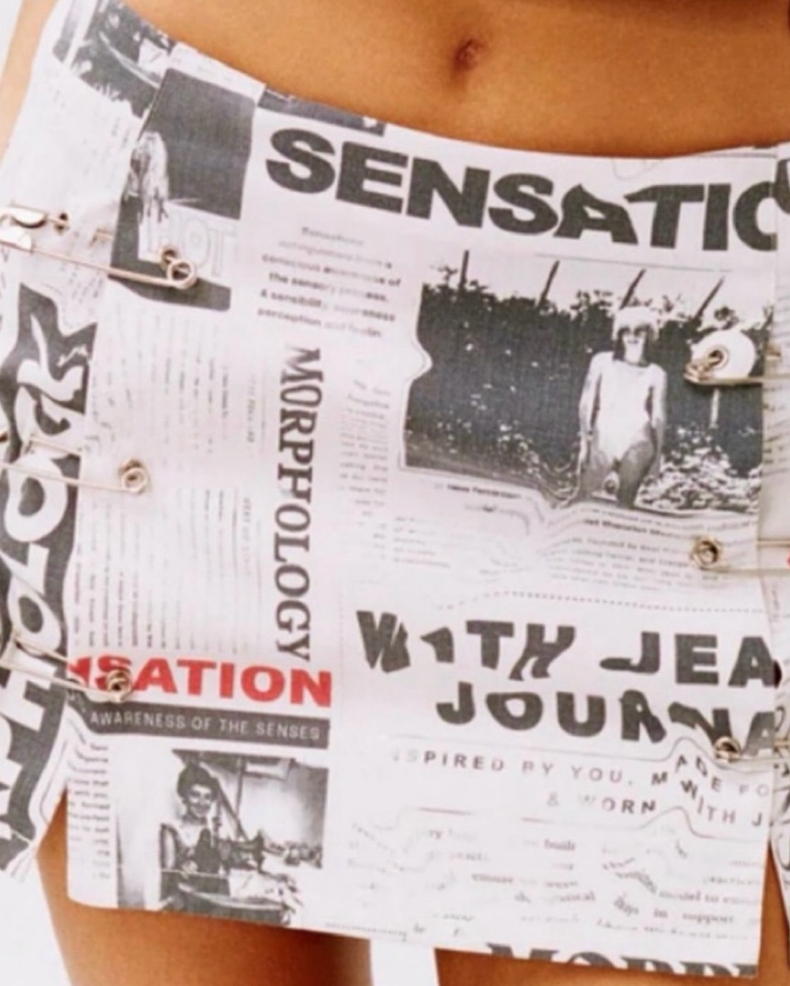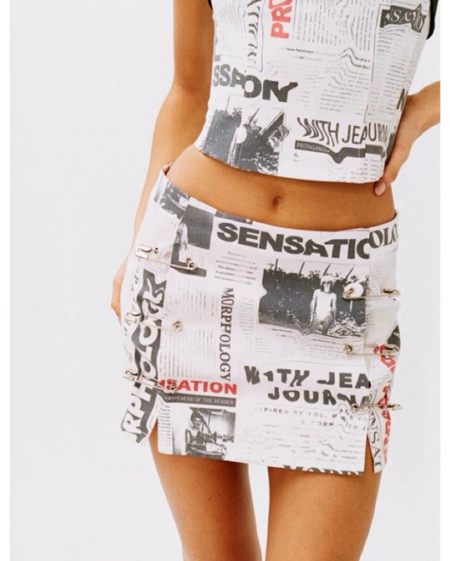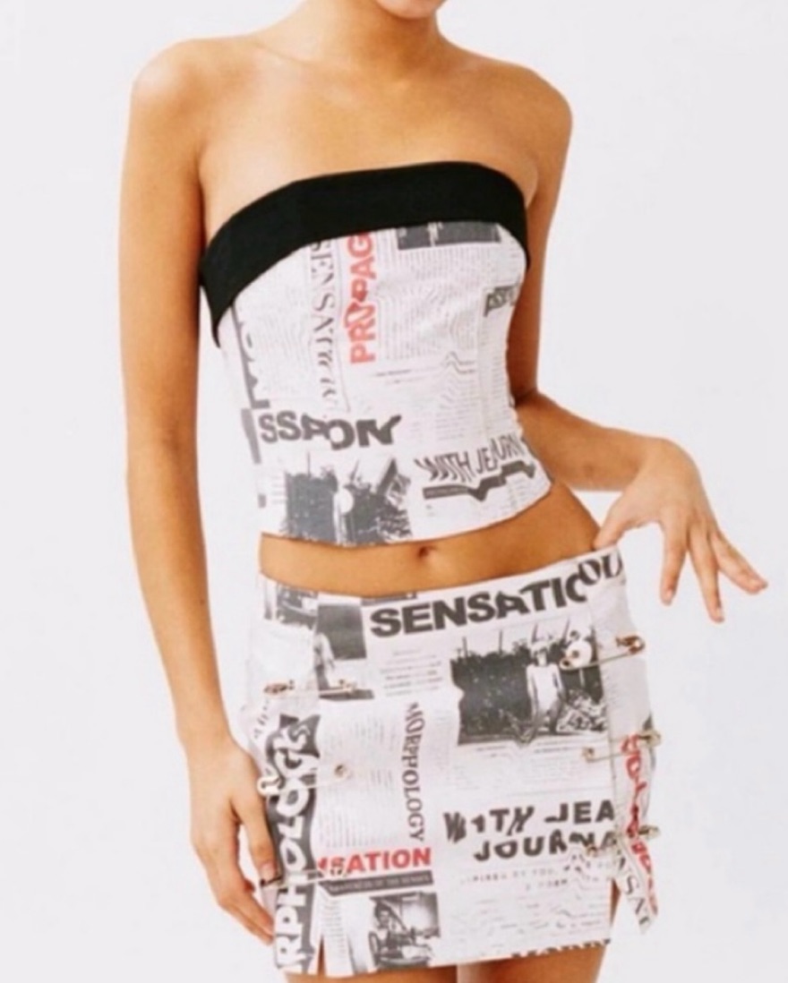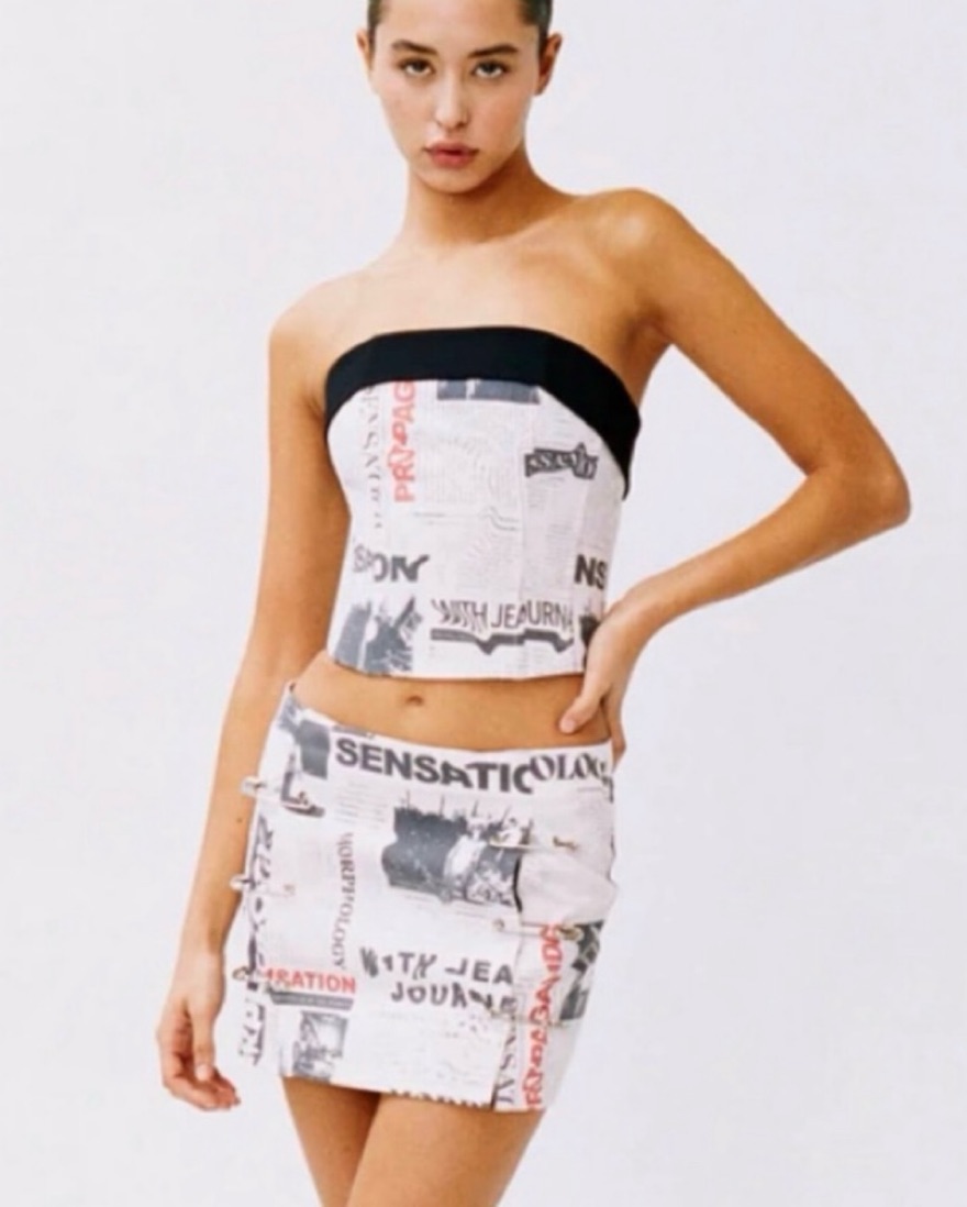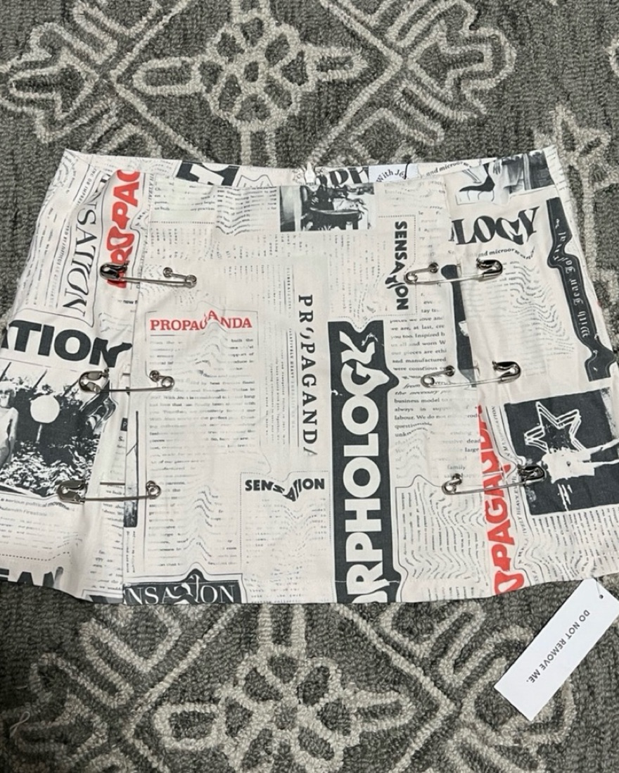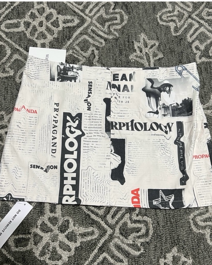 Only worn once. Size medium, its a low rise or mid rise fit. I do not have the marching uop with it but can be paired with With Jean Buckle top (in my closet) or any other white / black crop top