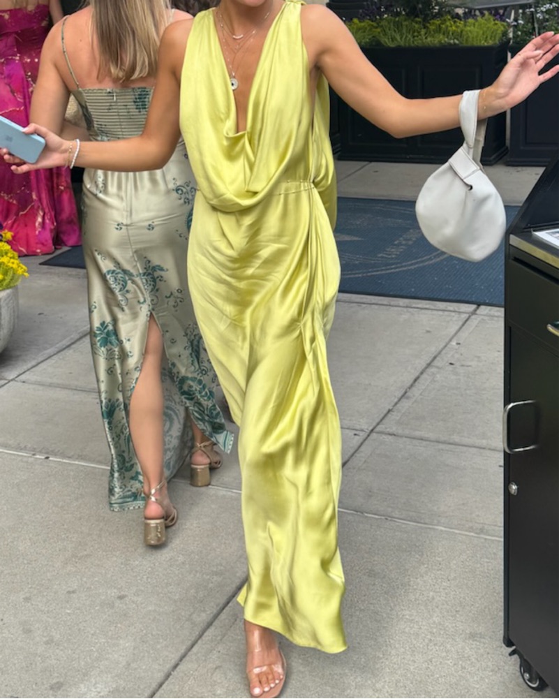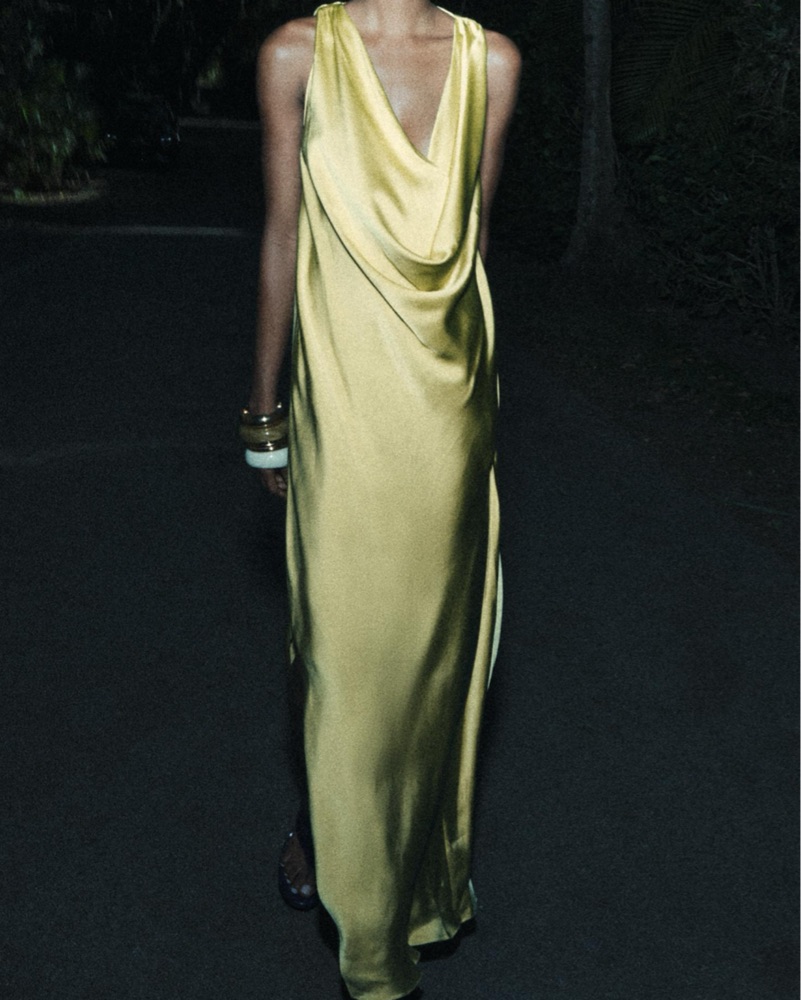 Zara Green Flowy Satin Dress