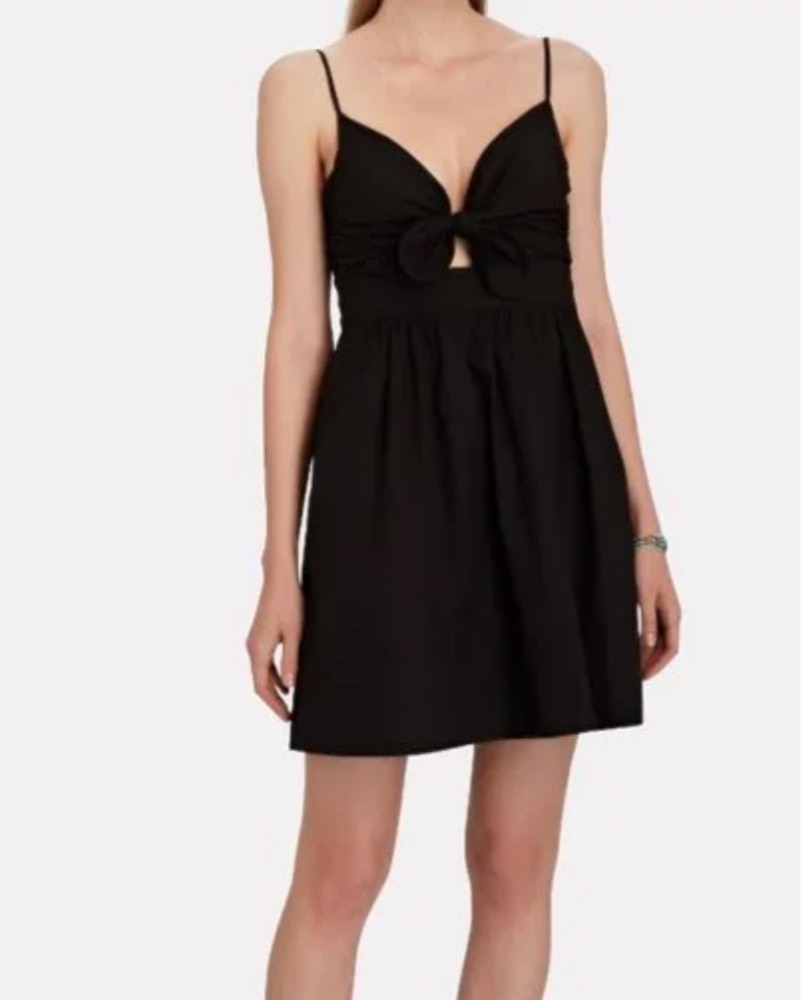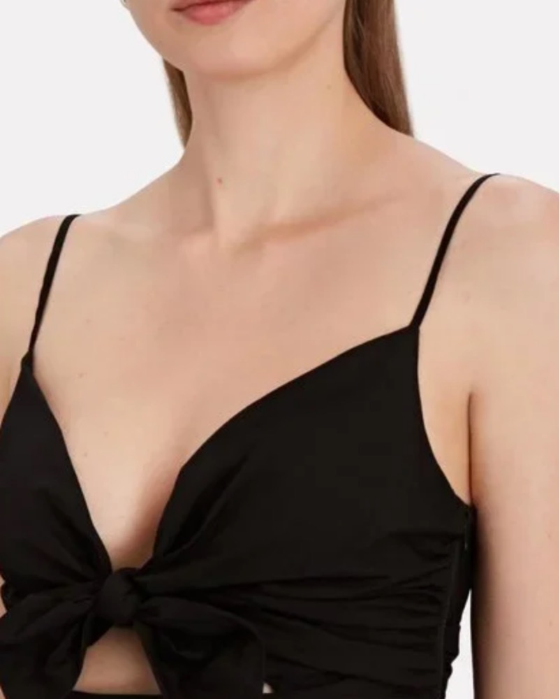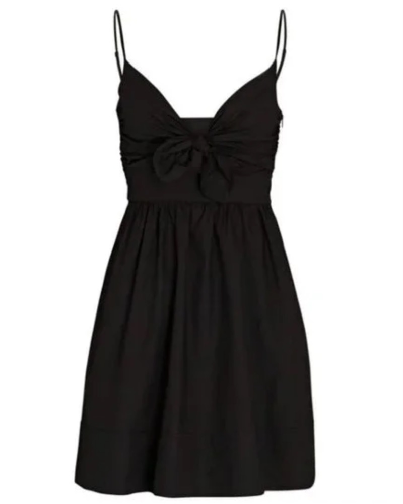 Easy black dress. This stunning black dress features a flattering twisted tie detail and feminine silhouette, perfect for a night out or special event.