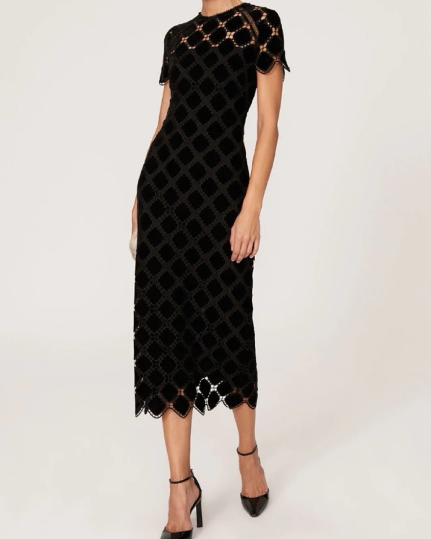 Shoshanna Kiriya Lace Column Midi Dress. Black, size 6.