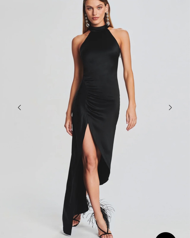 This stunning black maxi dress is perfect for a formal event or special occasion. The halter neckline and thigh-high slit add a touch of glamour.