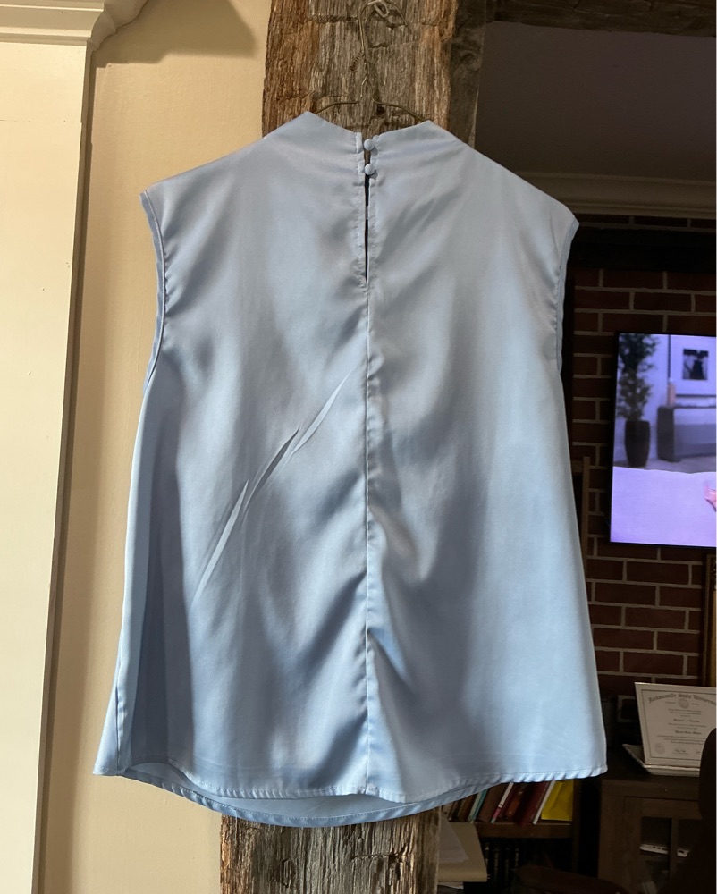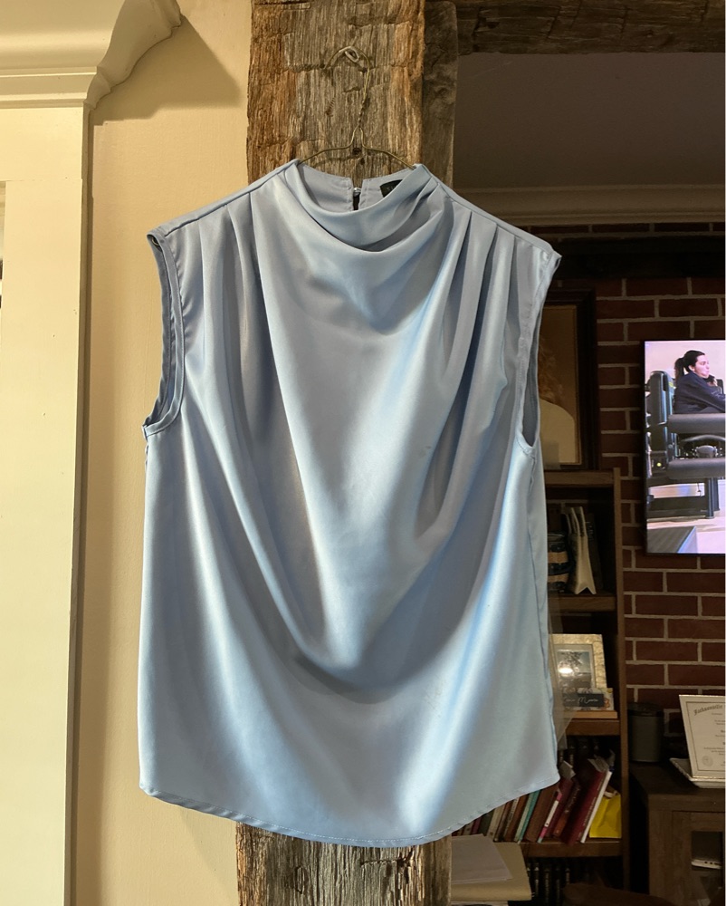 Elegant Blue Sleeveless Draped Blouse by SHEIN - Pickle