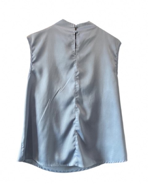 Elegant Blue Sleeveless Draped Blouse