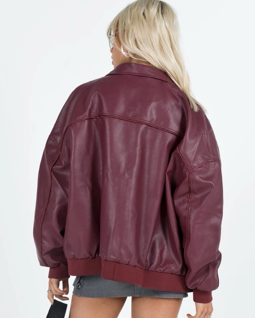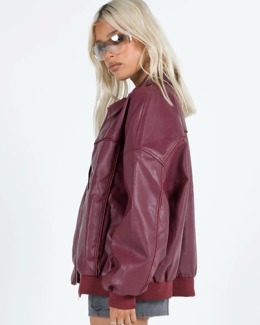 Goldsmith Faux Leather Bomber Jacket by Princess Polly - Pickle
