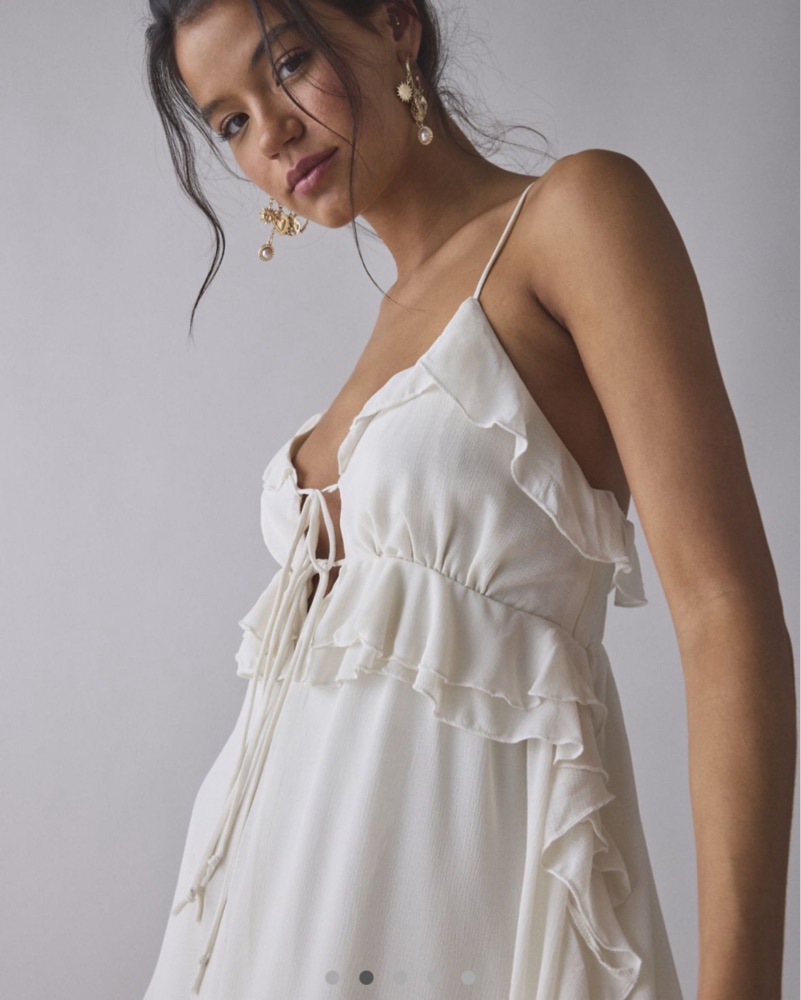 Super flattering and comfortable boho romper, adjustable straps create a flattering, feminine silhouette. (white/beige color) Size XS although fits XS-M due to flowy and babydoll silhouette!
