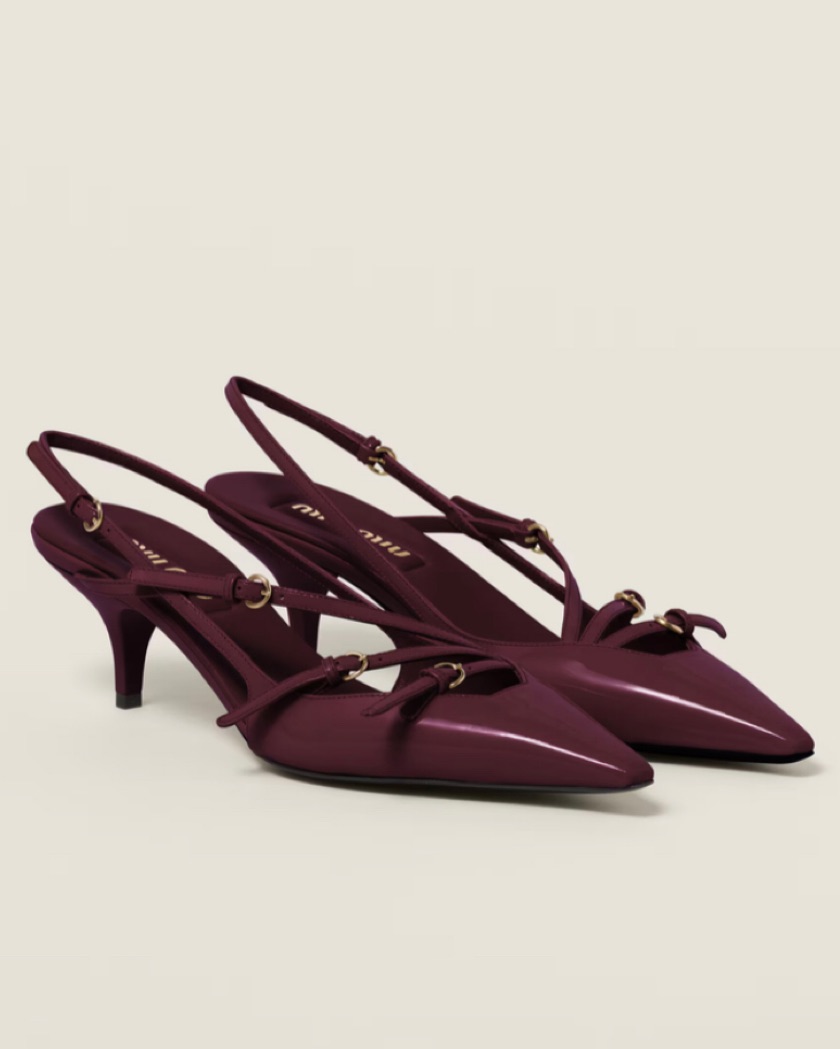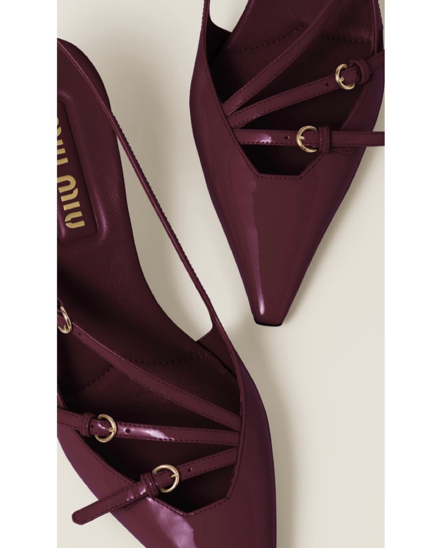 SS24 runway Miu Miu burgundy kitten heels. 2” heel, IT 39. Daily rentals are $30, just message me and I’ll update pricing!
