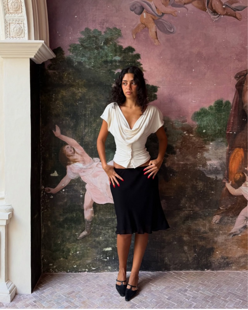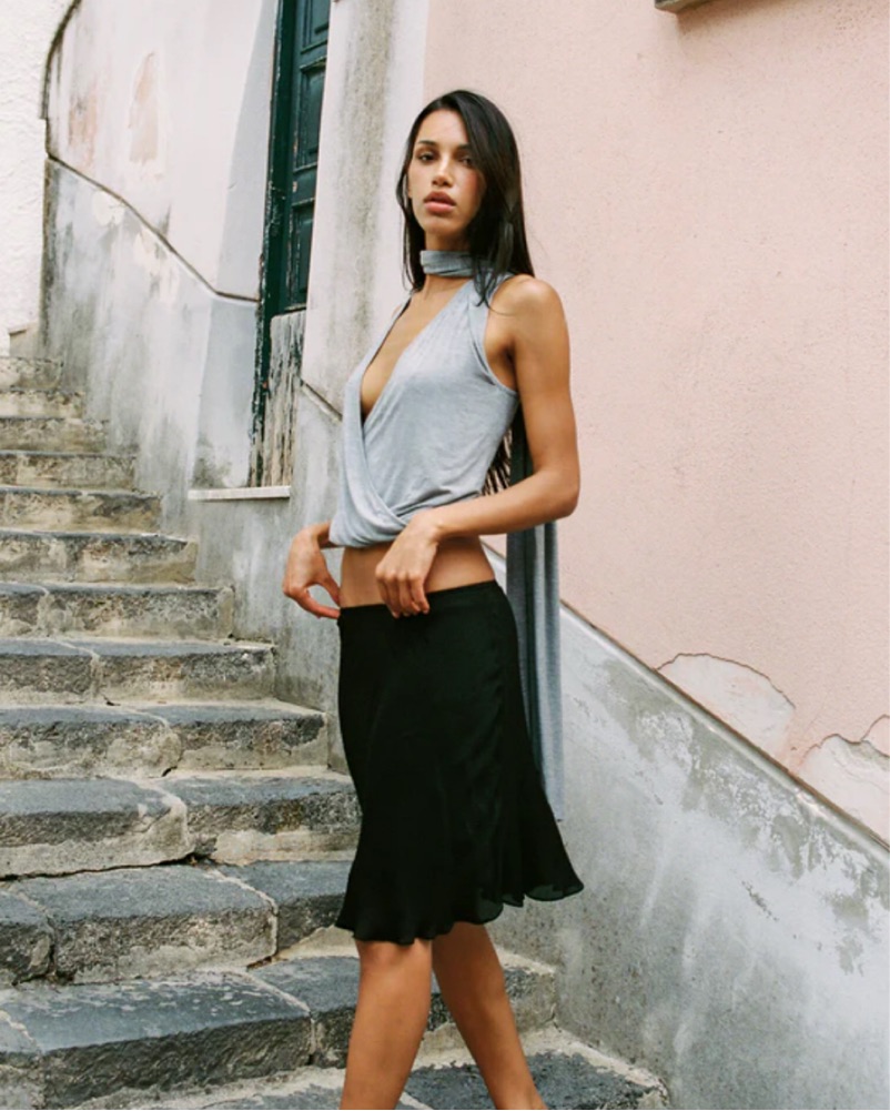 The Penny Skirt is a low-rise skirt with a picot-edged elastic waistband and a fully lined finish.