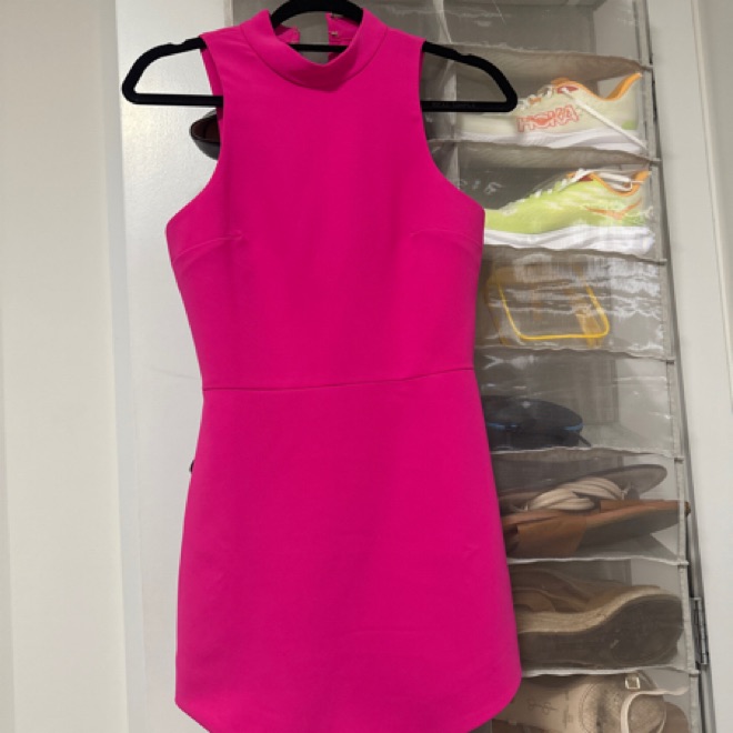 Bright pink, very short dress. Never worn! So flattering
