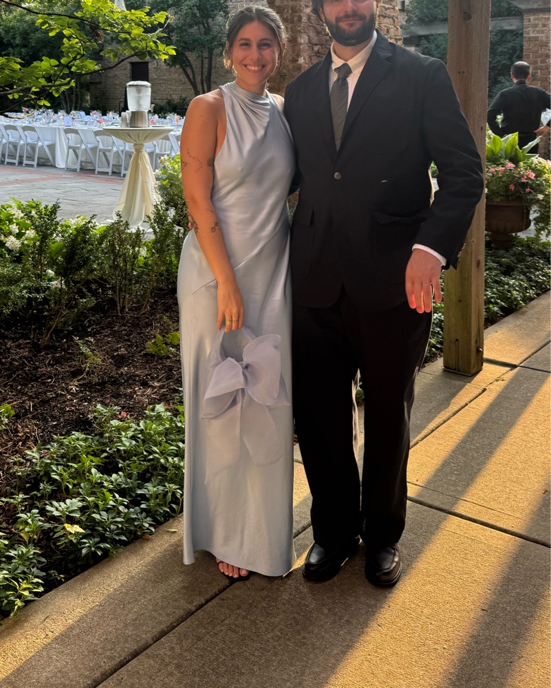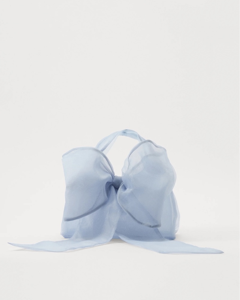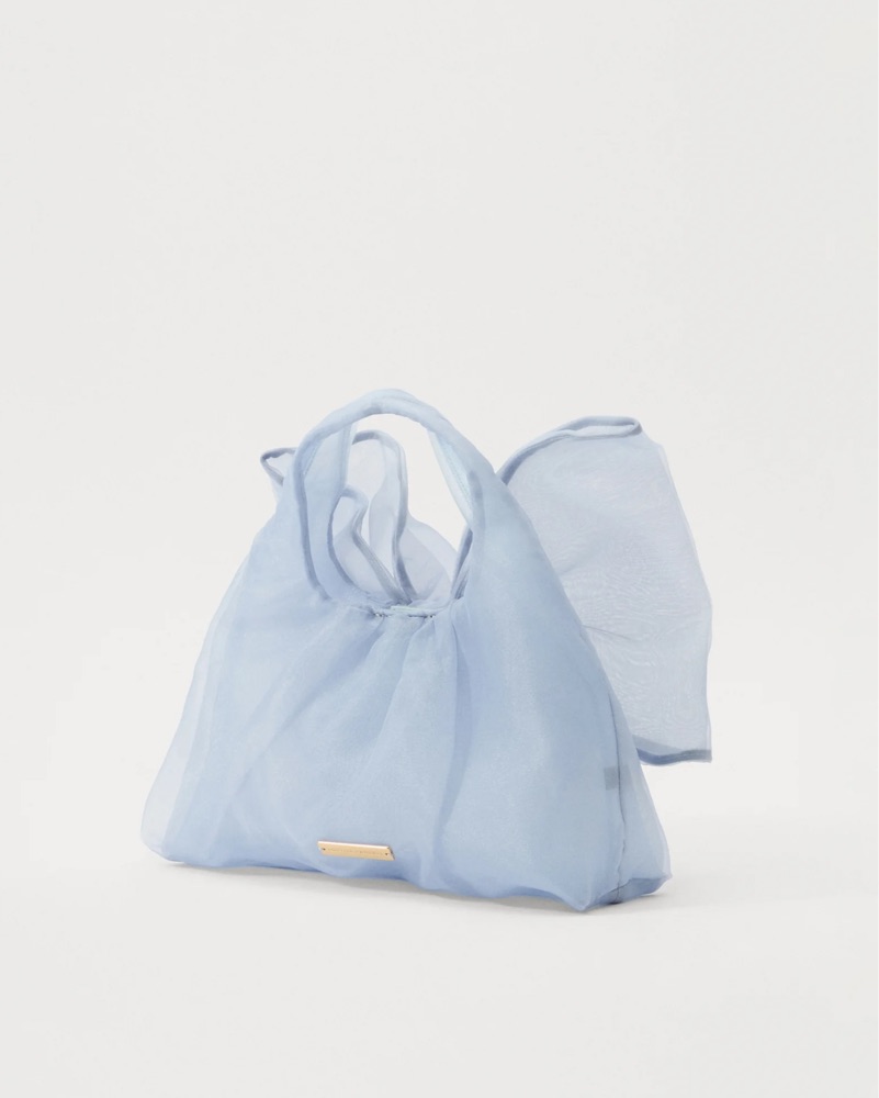 Sheer blue organza clutch. Perfect for a wedding guest or your something blue item as a bride / for other bridal events. Has a magnetic closure and fits phone, keys, wallet, gloss. So feminine and chic, I get so many compliments when I wear it!