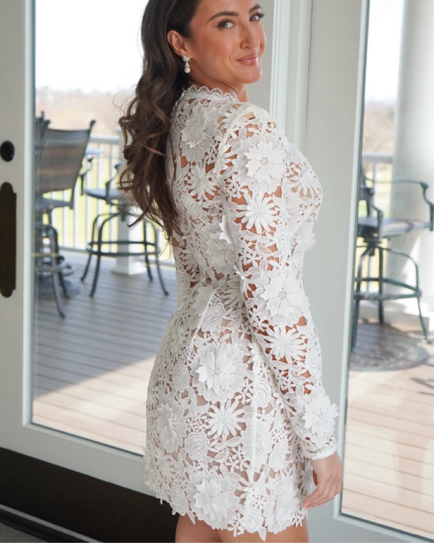 Long sleeve lace white dress. Work once, no alterations