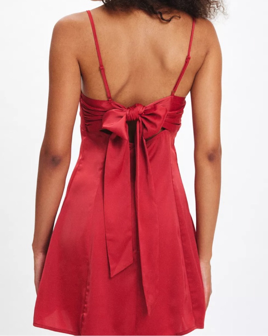 UO Bella Bow-Back Satin Mini Dress