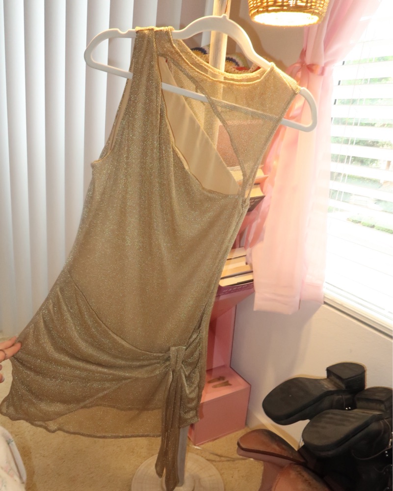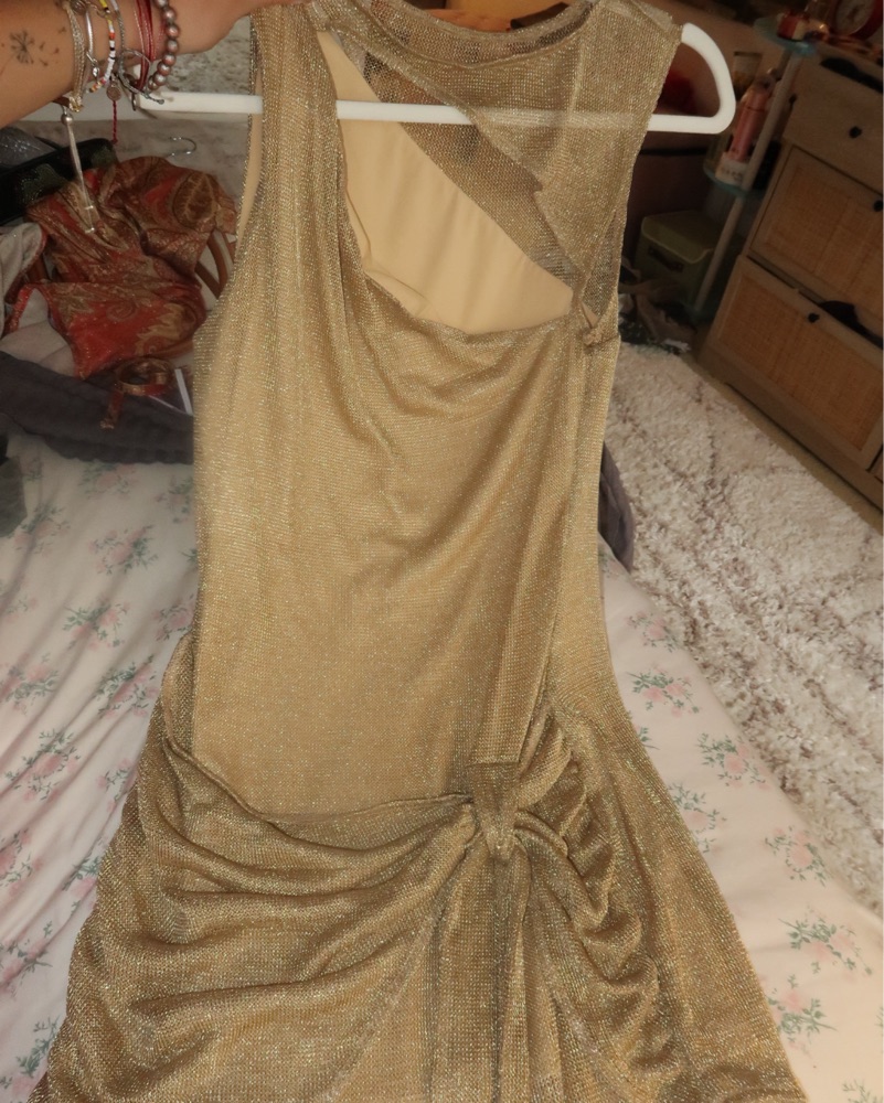 Cutest gold dress. Cut out at top and side tie detail.