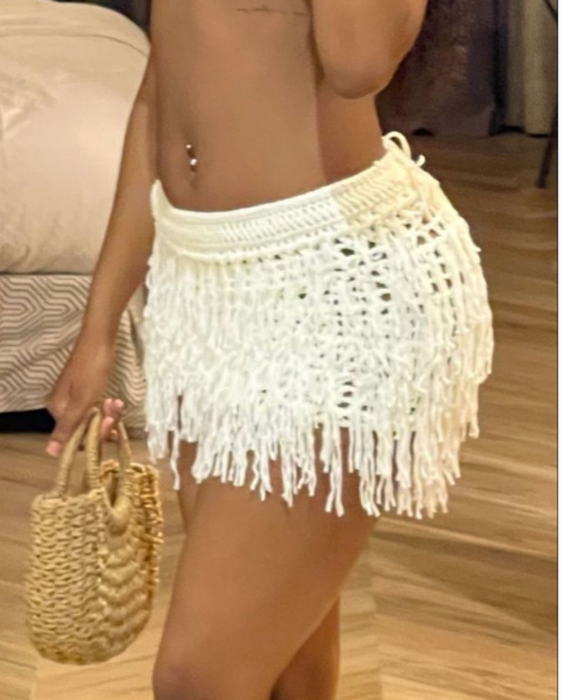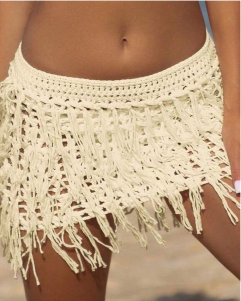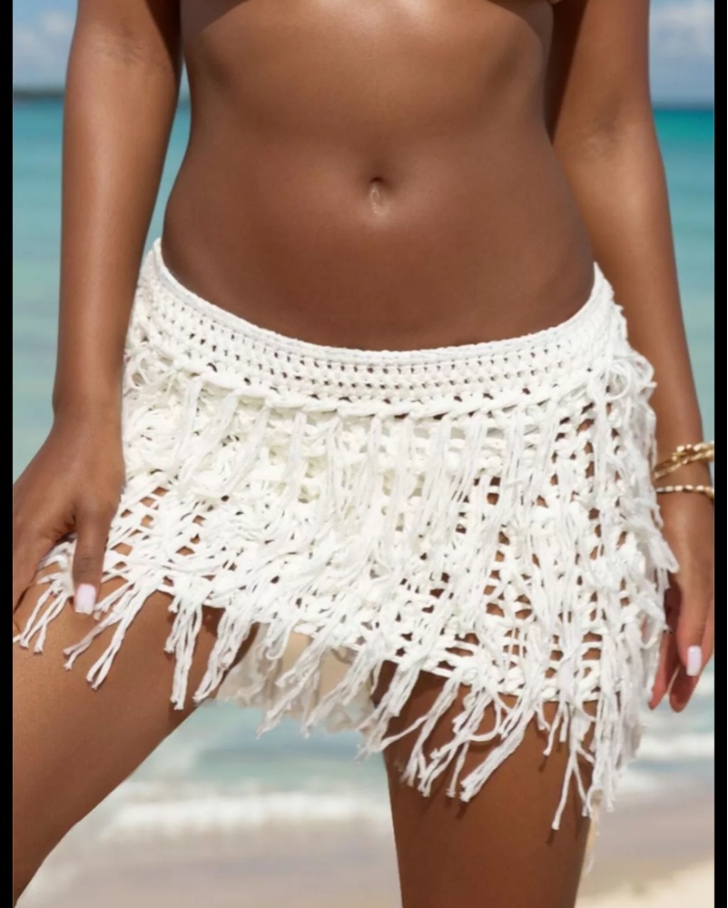 This stunning crochet fringe skirt is perfect for a beach vacation or festival outing. The lightweight, airy design and bohemian-inspired fringe detail create a carefree, effortless vibe.