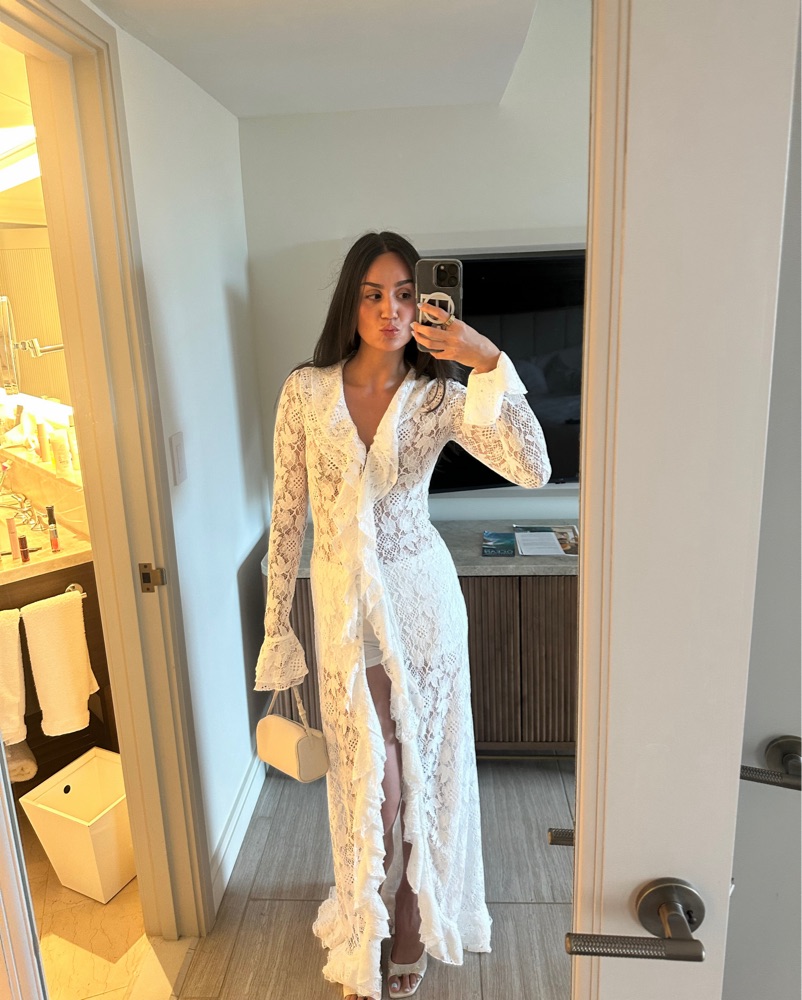 Worn once and dry cleaned!! Perfect for bridal looks, honeymoon, etc. Can wear as a dress or top or robe